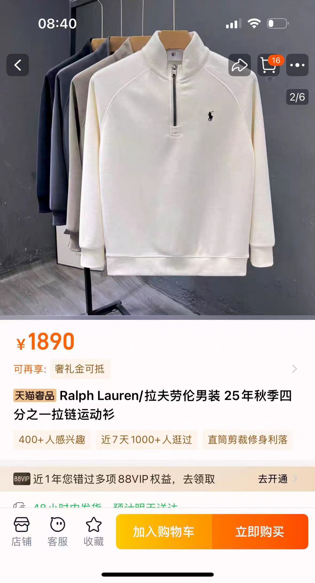 拉夫劳伦Ralph Lauren S25小马标半拉链卫衣松弛 377971