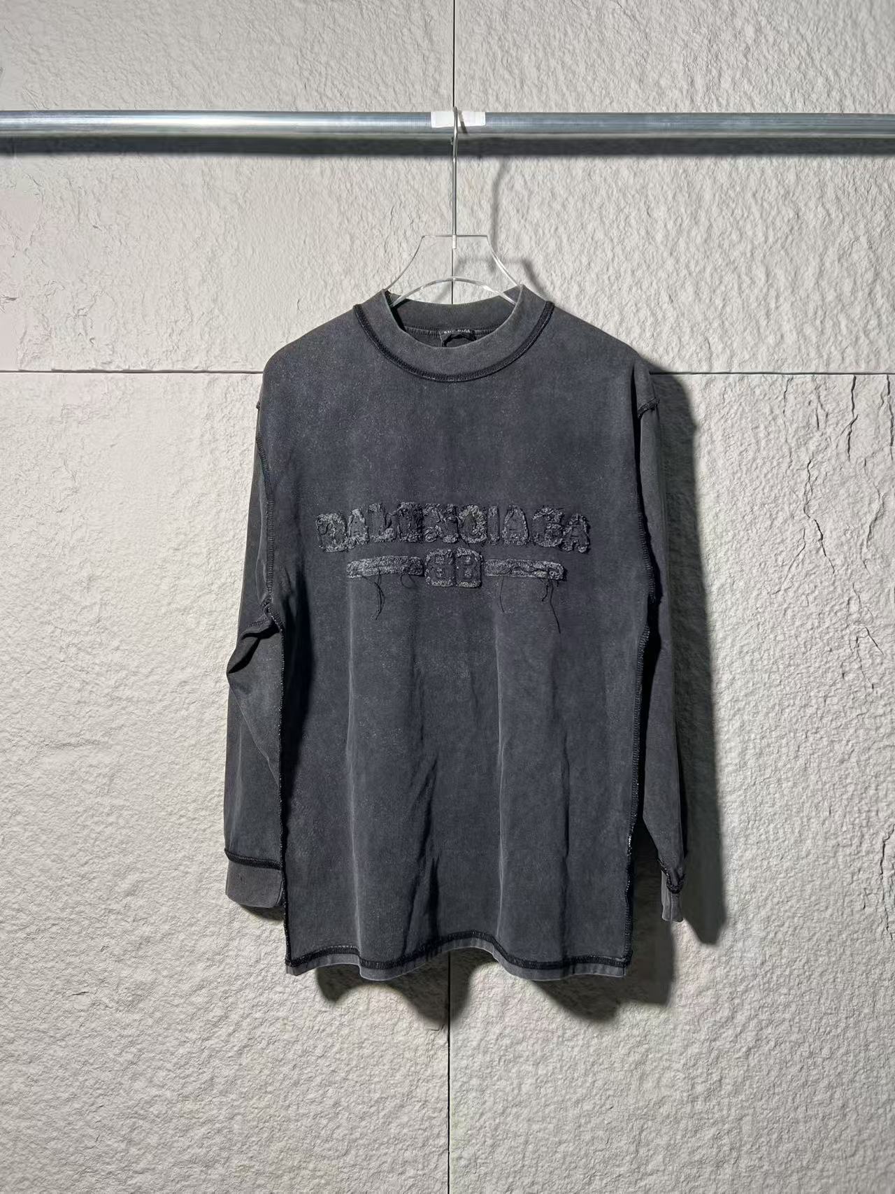 BLCG巴黎世家25fw秋冬新款简约字母贴布刺绣洗水反穿磨破 362793