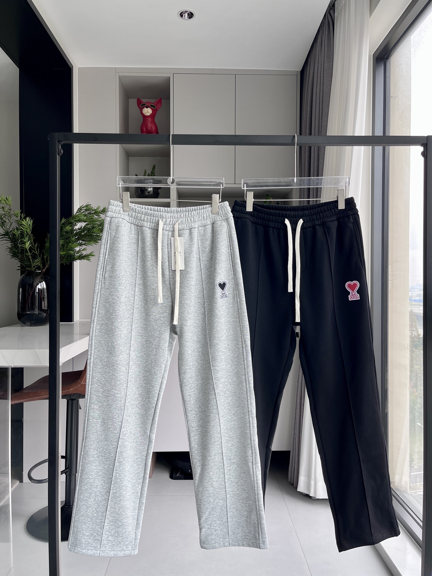 ami刺绣加绒加厚直筒裤卫裤