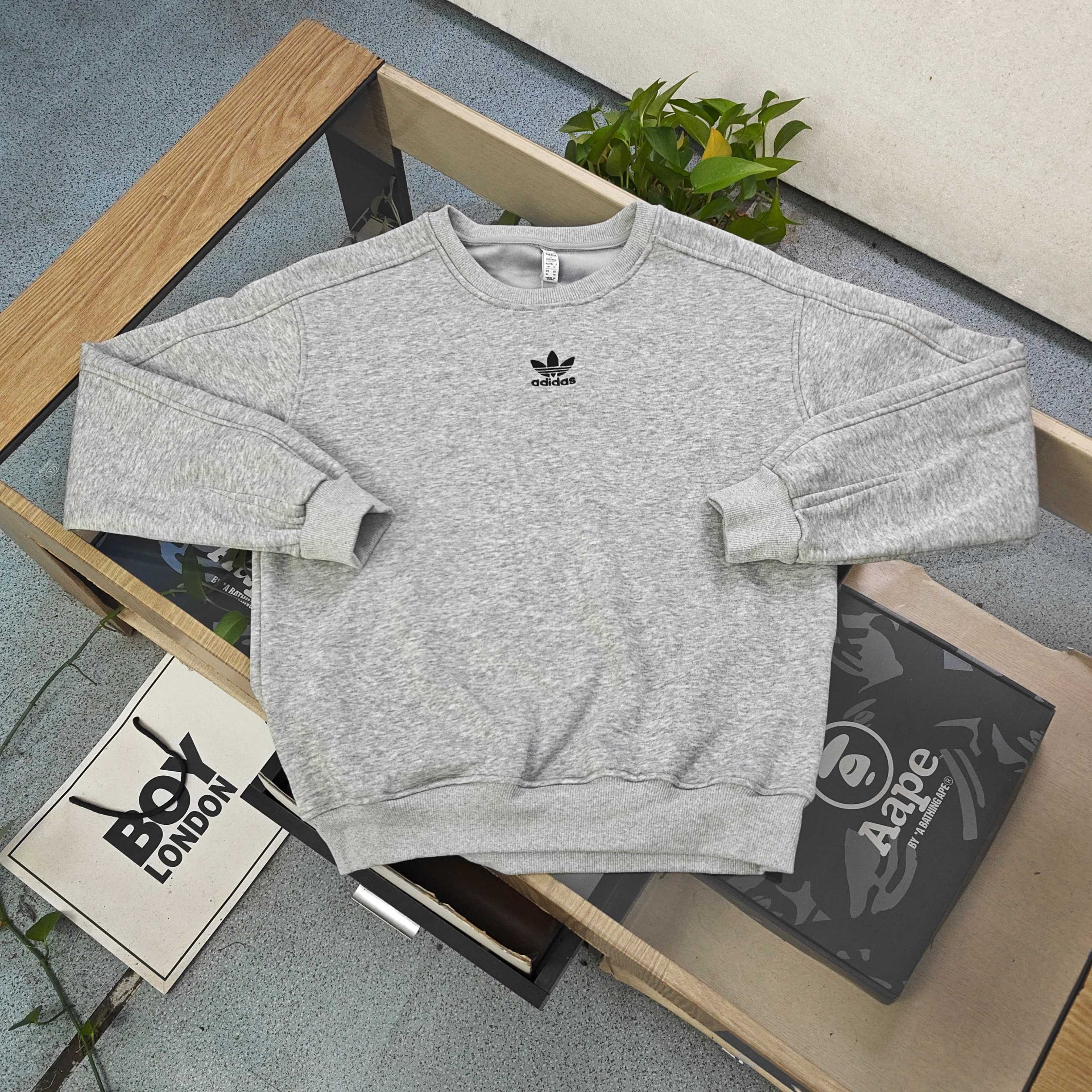 阿迪达斯Adidas字母灰色拼接美式复古学院风圆领卫衣ove 361072