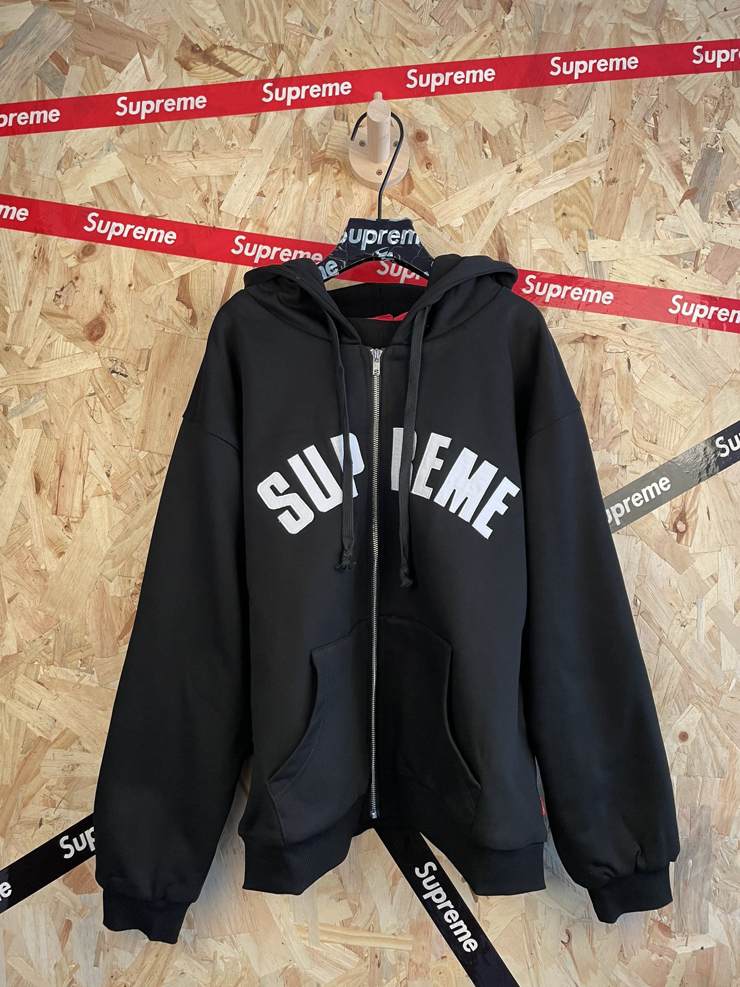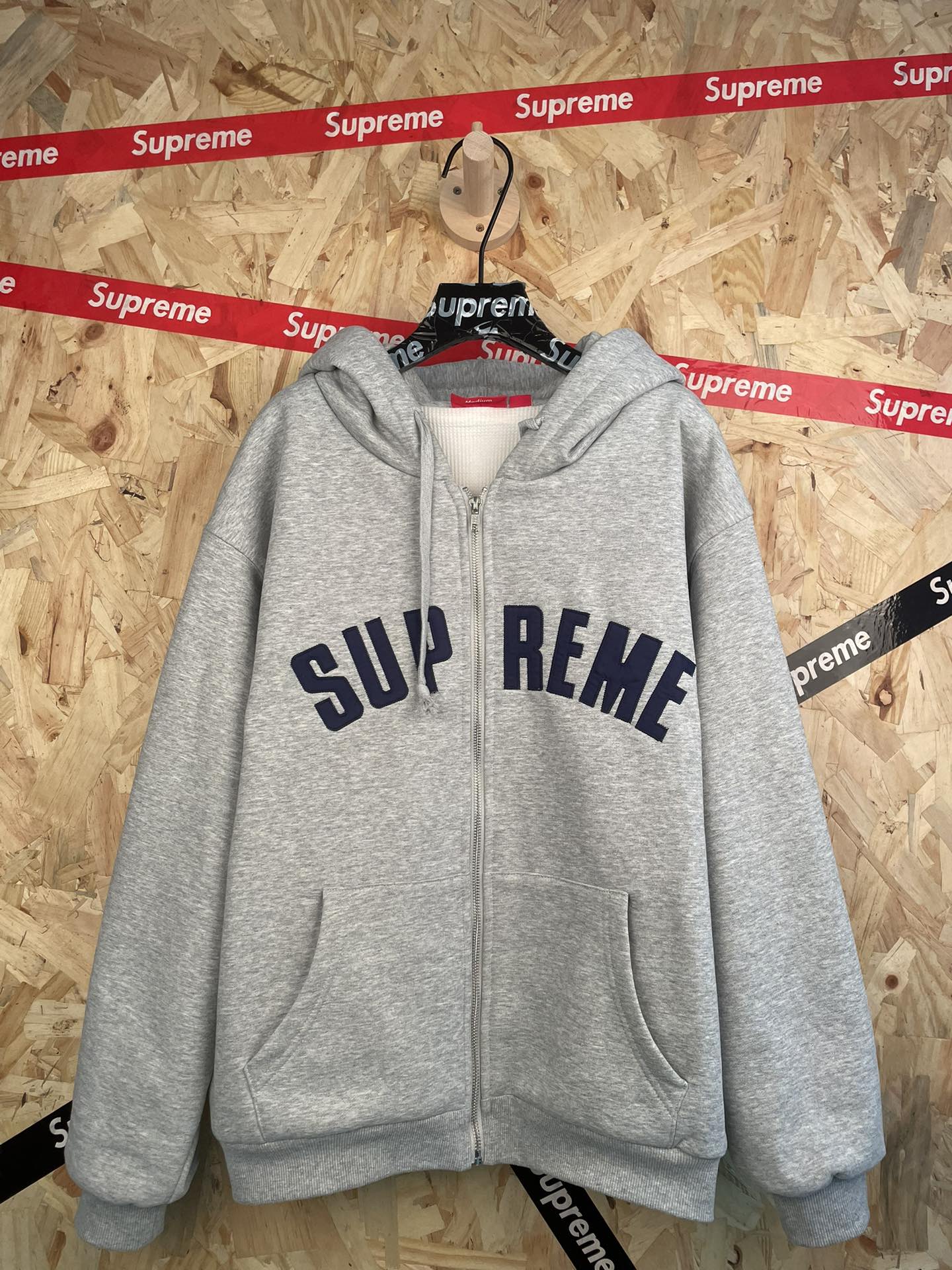 SU REME重工背后刺绣字母连帽套装卫衣厚磅抓绒面料