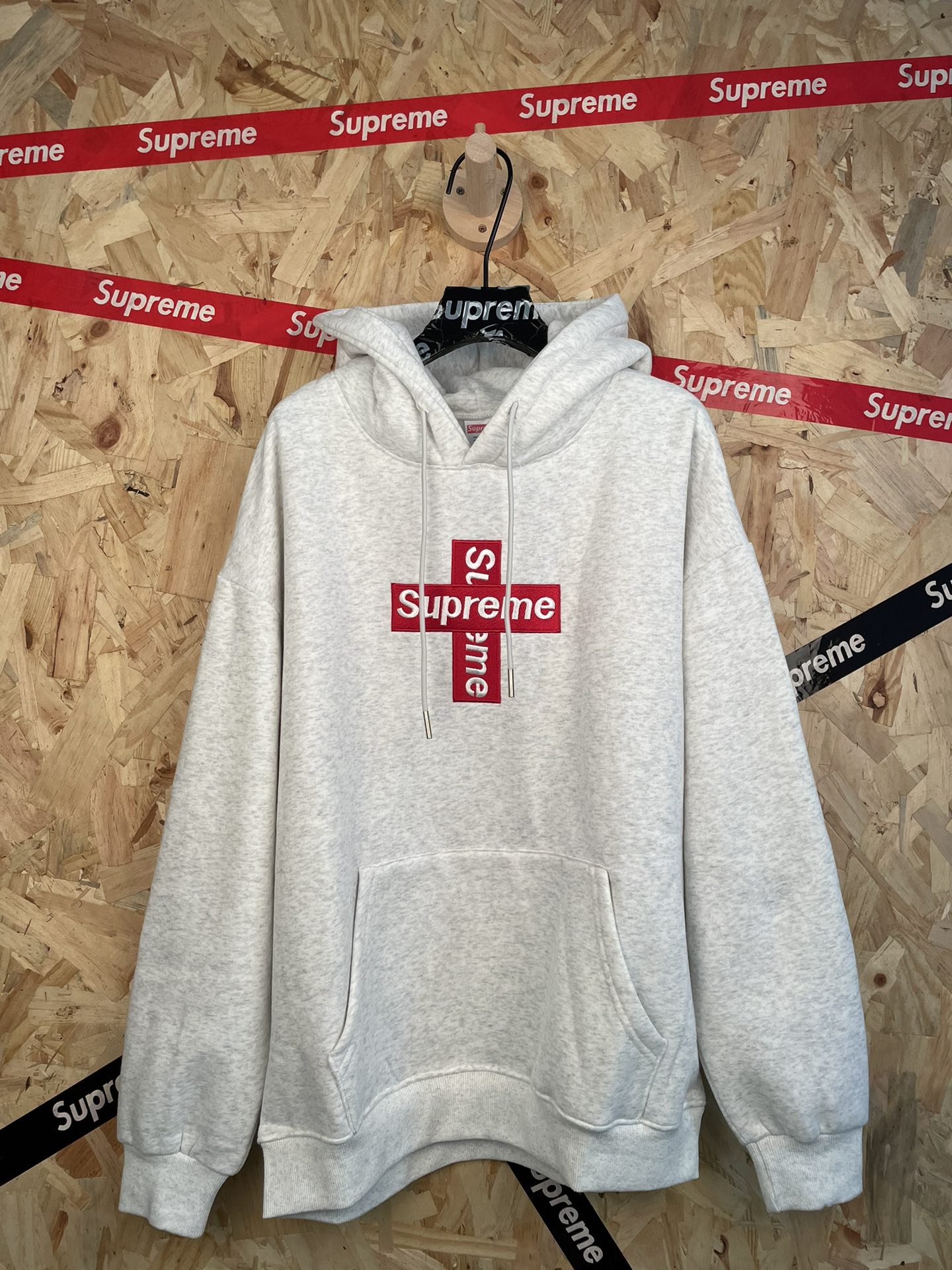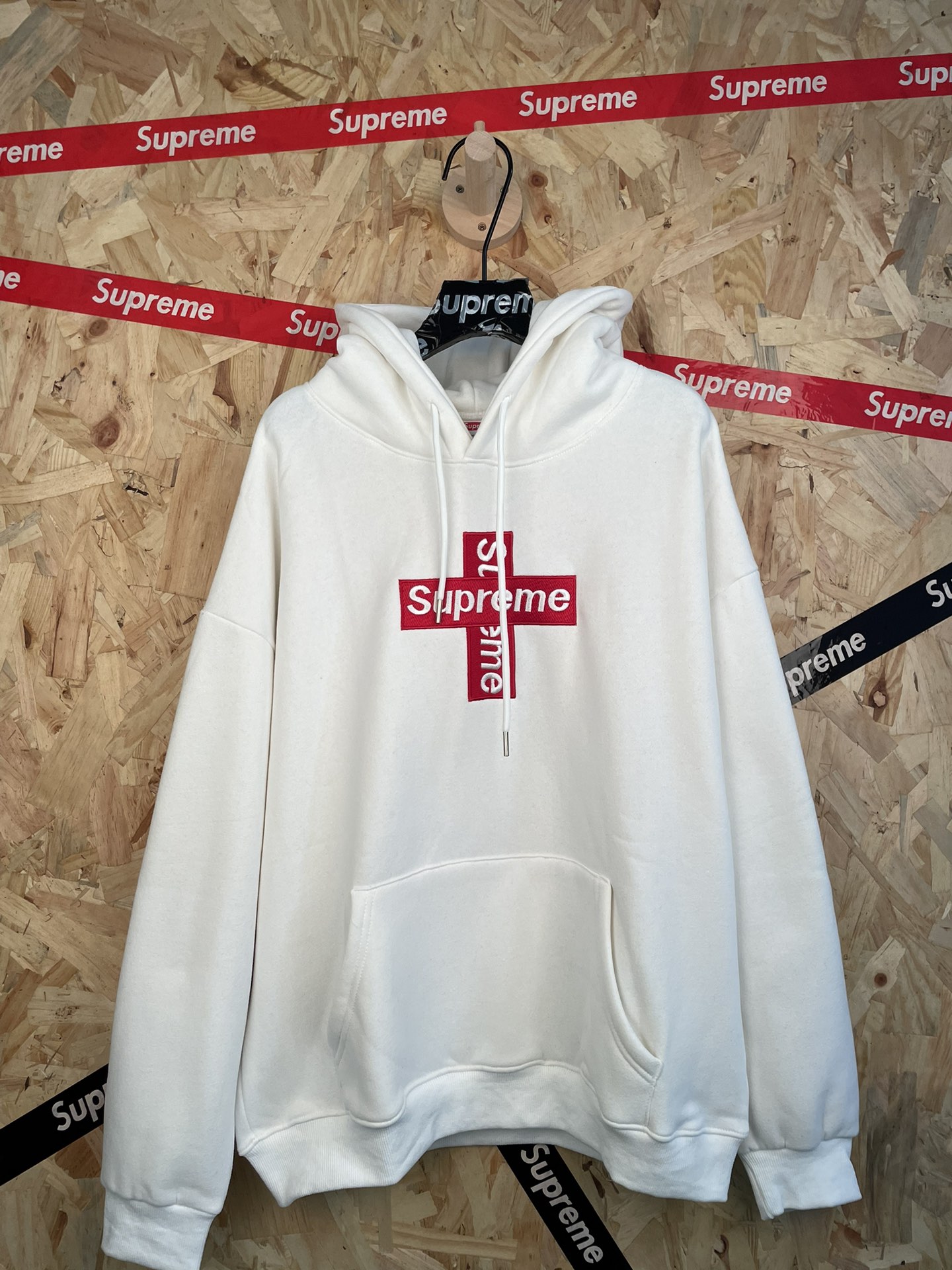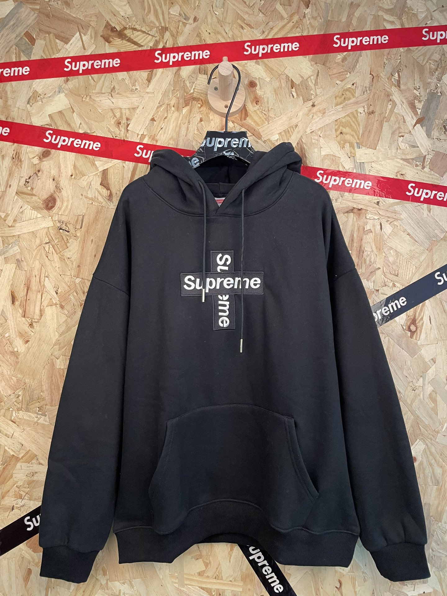 su reme胸口经典十字架刺绣字母连帽卫衣男女同款