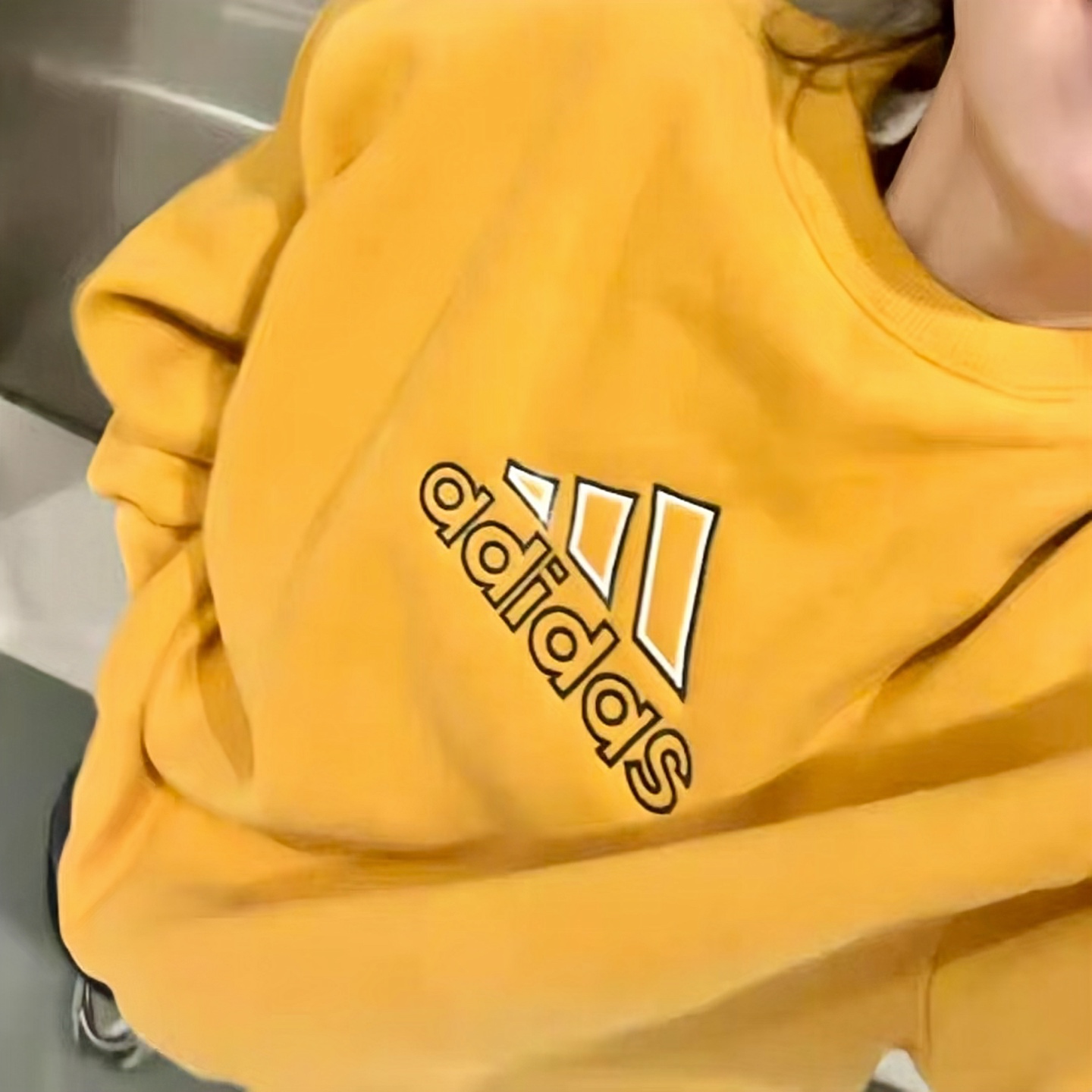 Adidas阿迪三叶草古着限定刺绣logo姜黄色卫衣