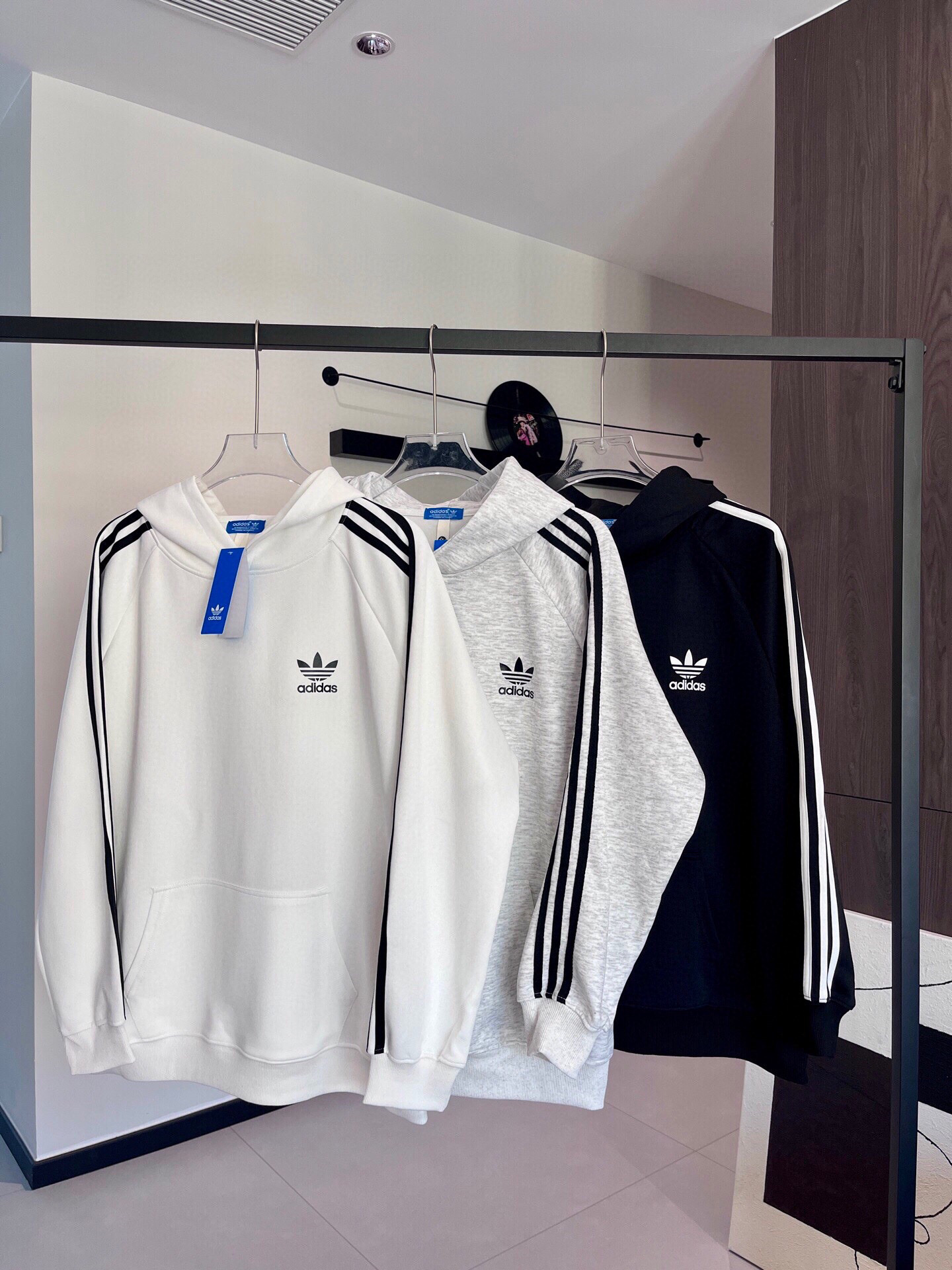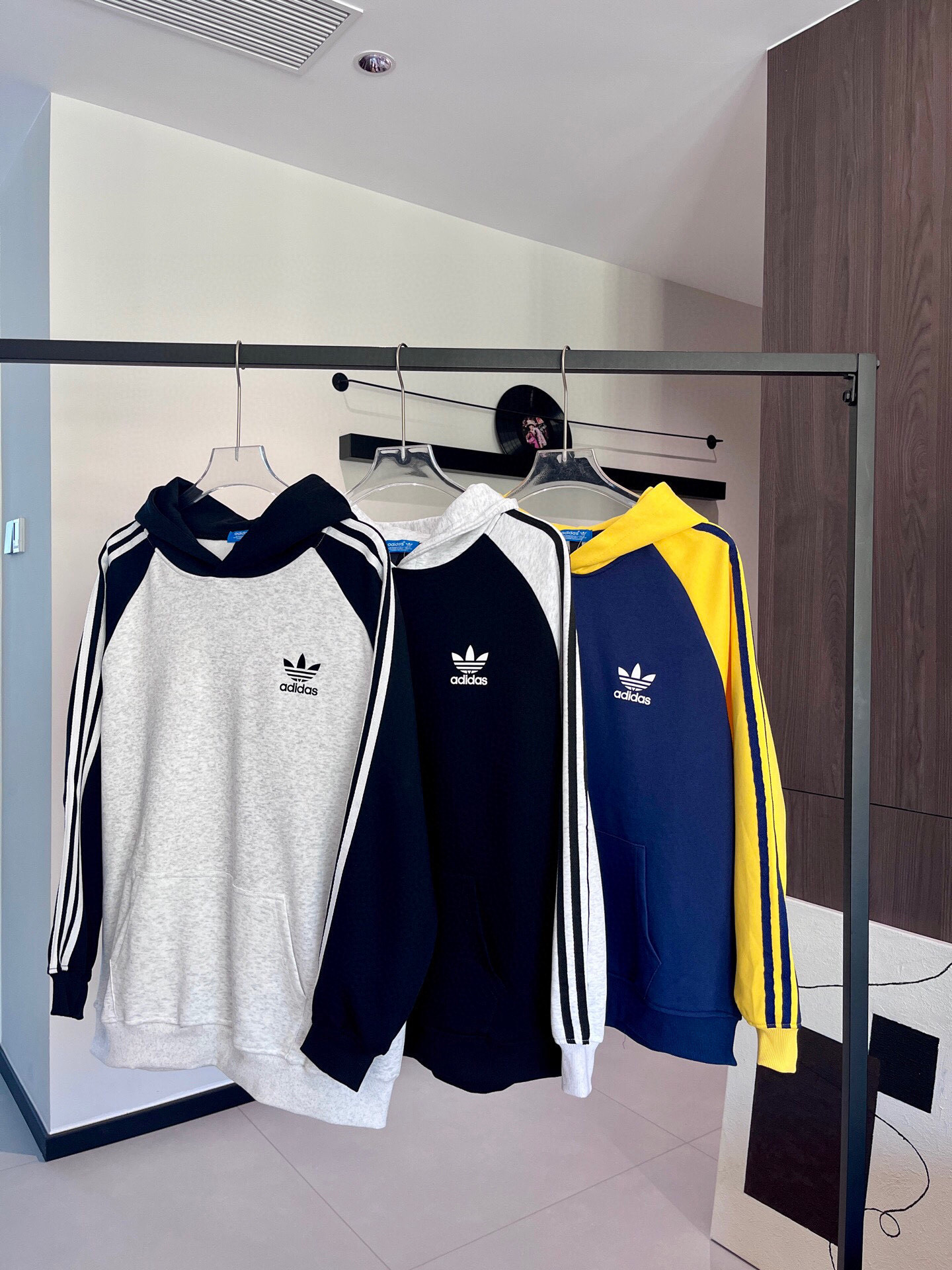 Adidas阿迪达斯三叶草专柜同款发售经典拼色三杠连帽卫衣 420475