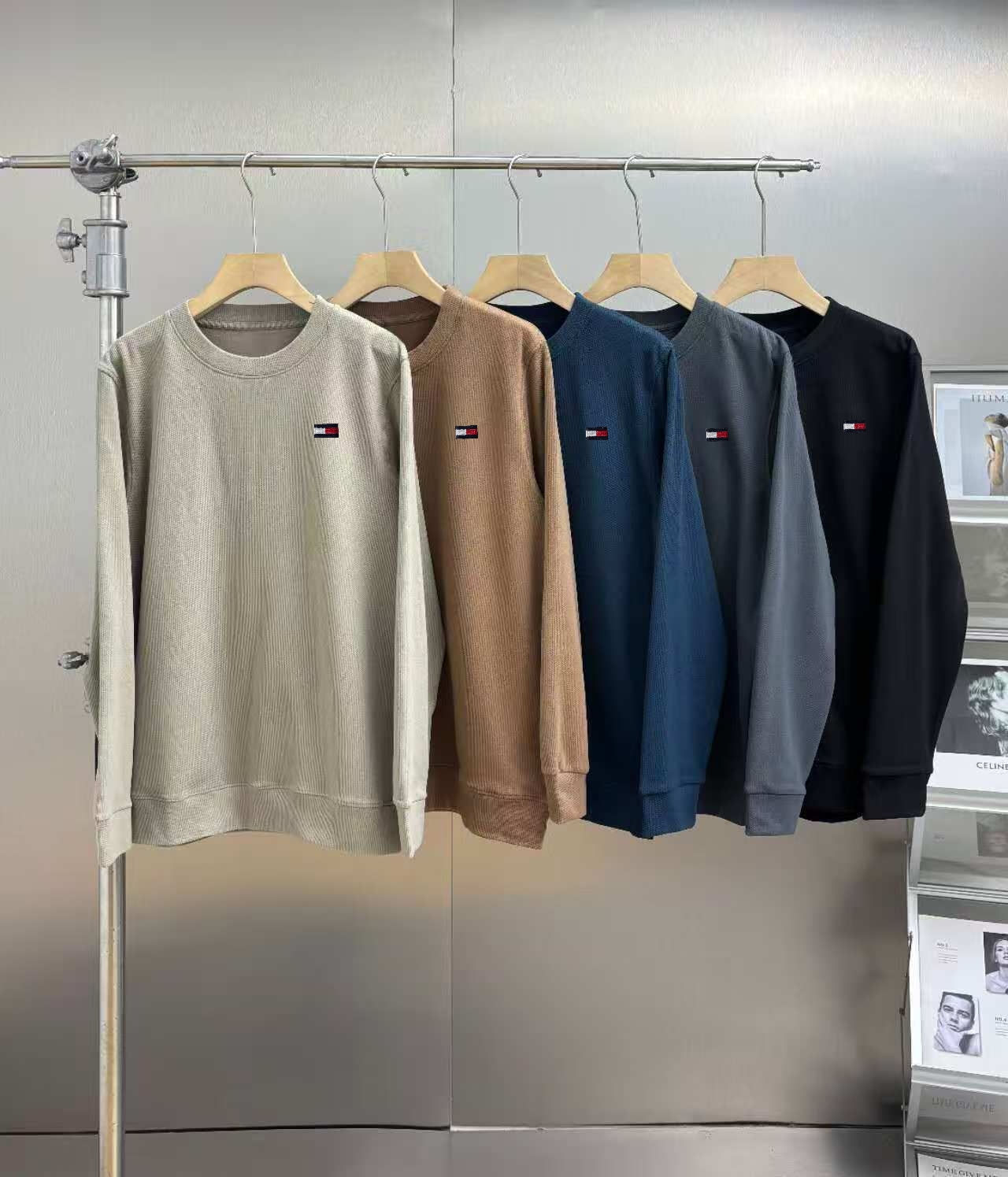 TOMMY 汤米华夫格简约百搭加绒圆领卫衣