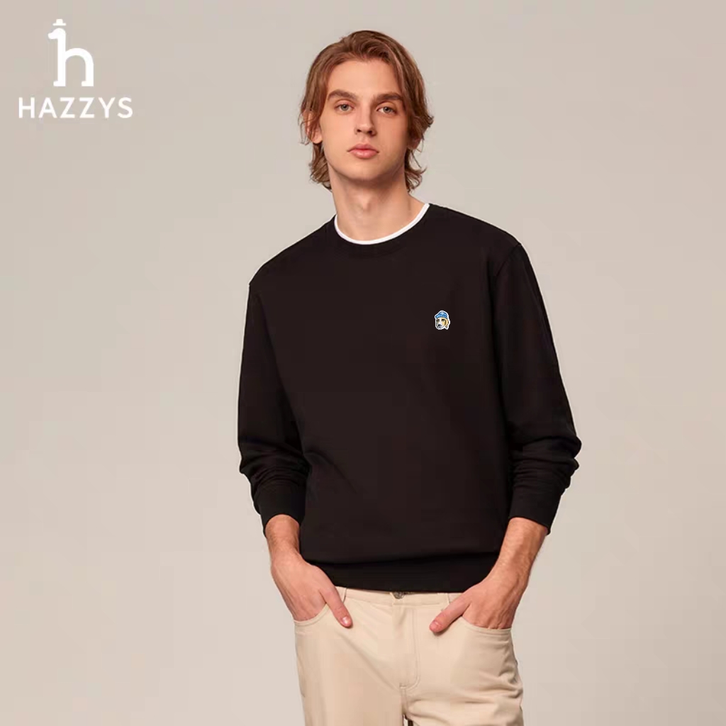 HAZZYS 哈吉斯帽子狗经典全棉加绒休闲情侣圆领套头 396964