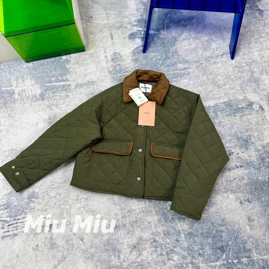 新款 miu25秋冬短款菱形格棉衣