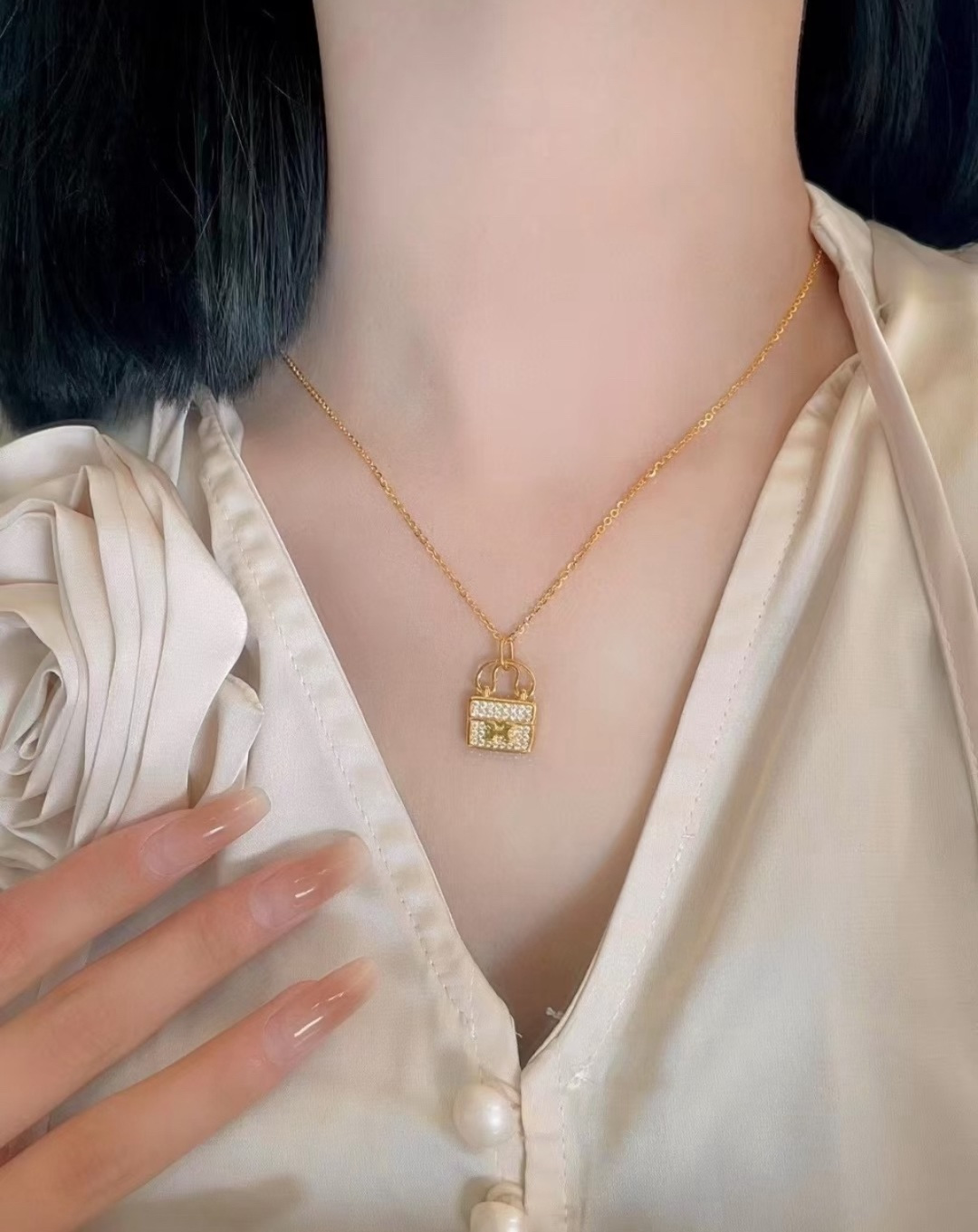 特价所见所得高品质礼盒全套 不退换爱马仕满钻包包款项链玫瑰金 476758