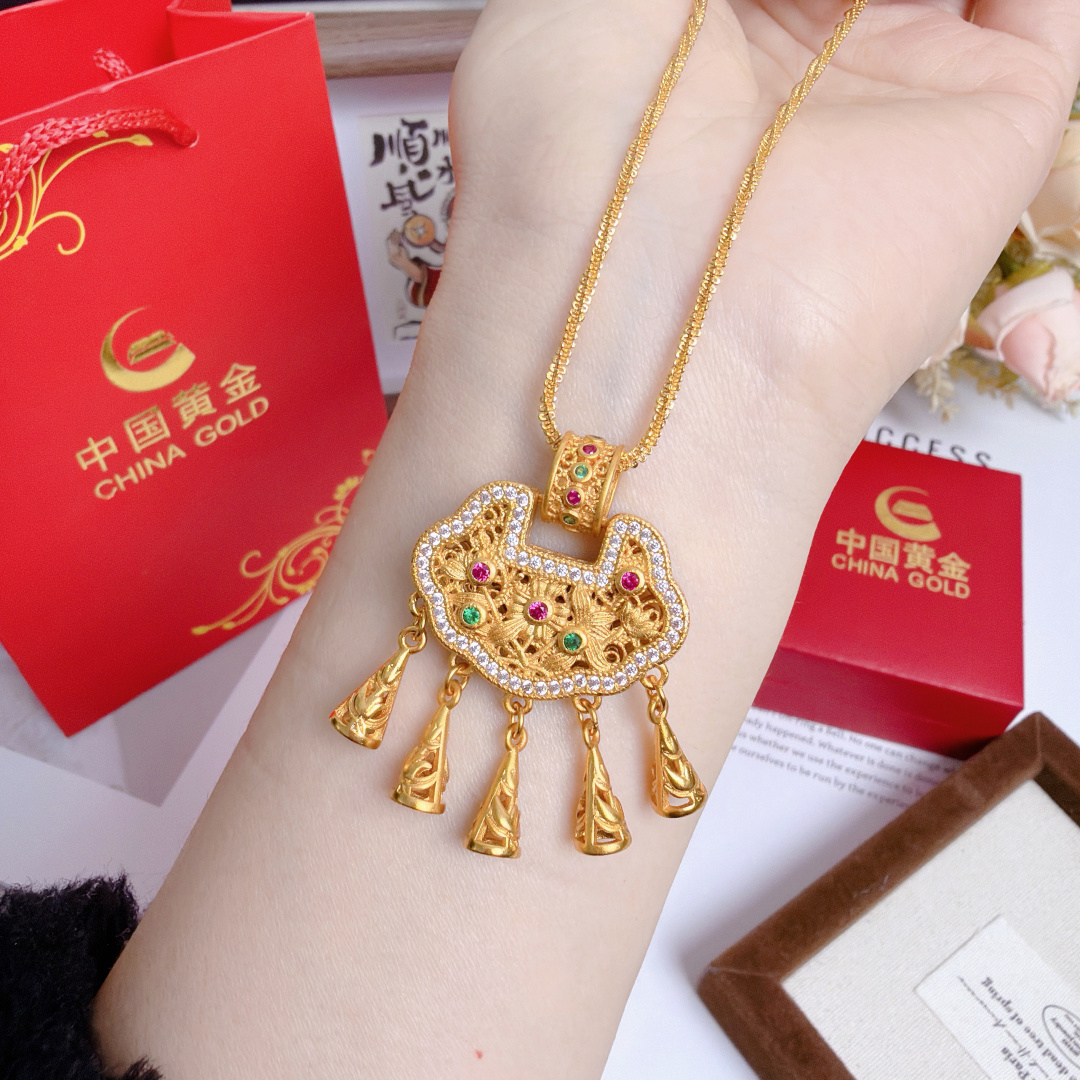 所见所得高品质礼盒全套 中国黄金同款花丝平安锁配万能项链 爆 476814