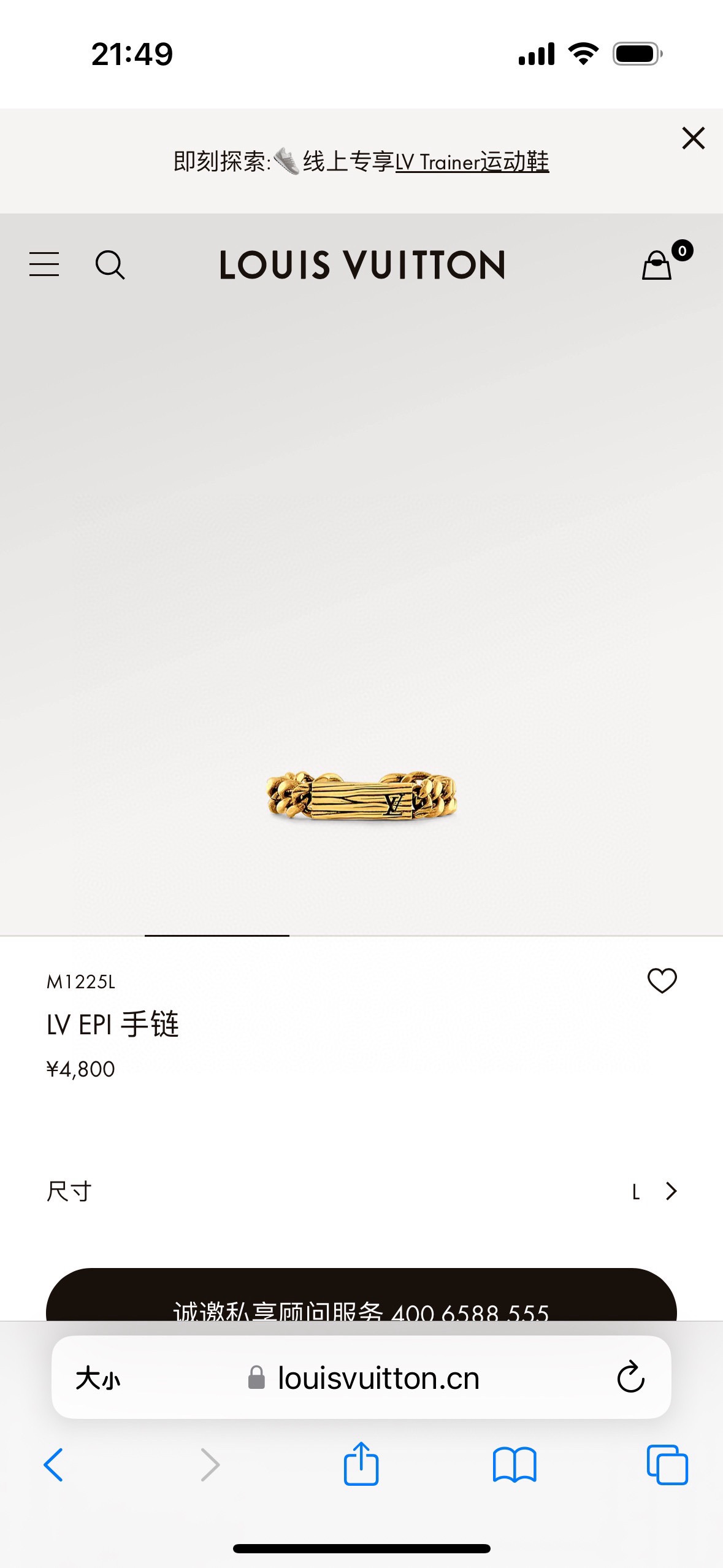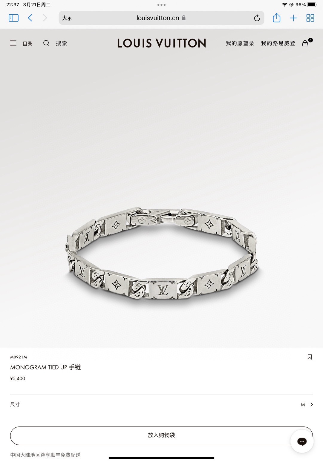 LV 路易威登金色铭牌手链 配全套包装