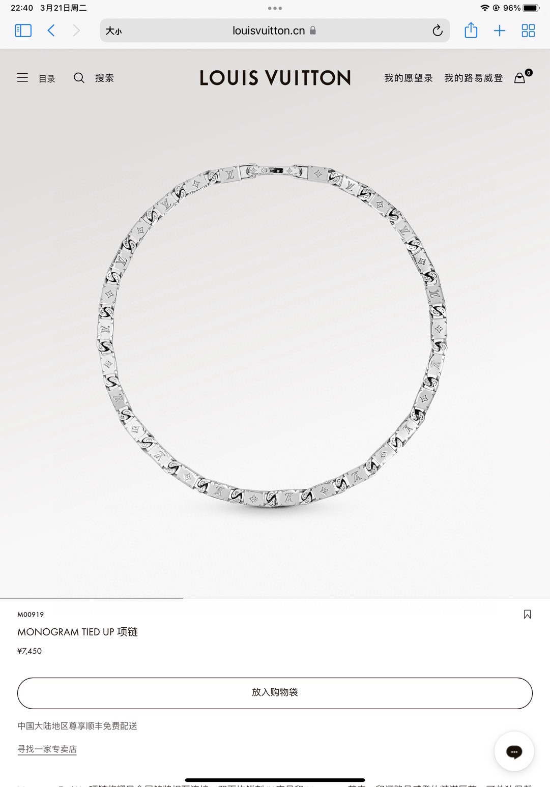 LV路易威登直条带钻项链 配全套包装