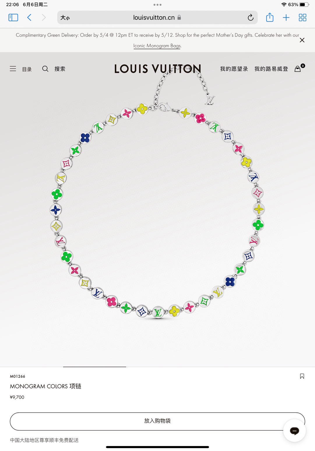 LV路易威登圆形彩色滴胶珠子项链 配全套包装