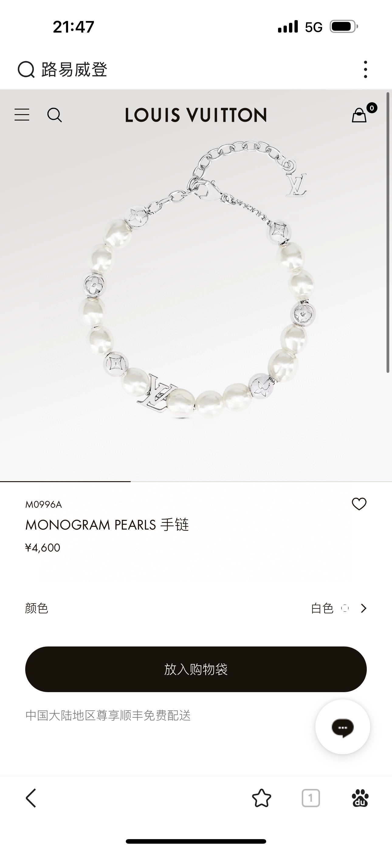 LV路易威登珍珠手链 配全套包装