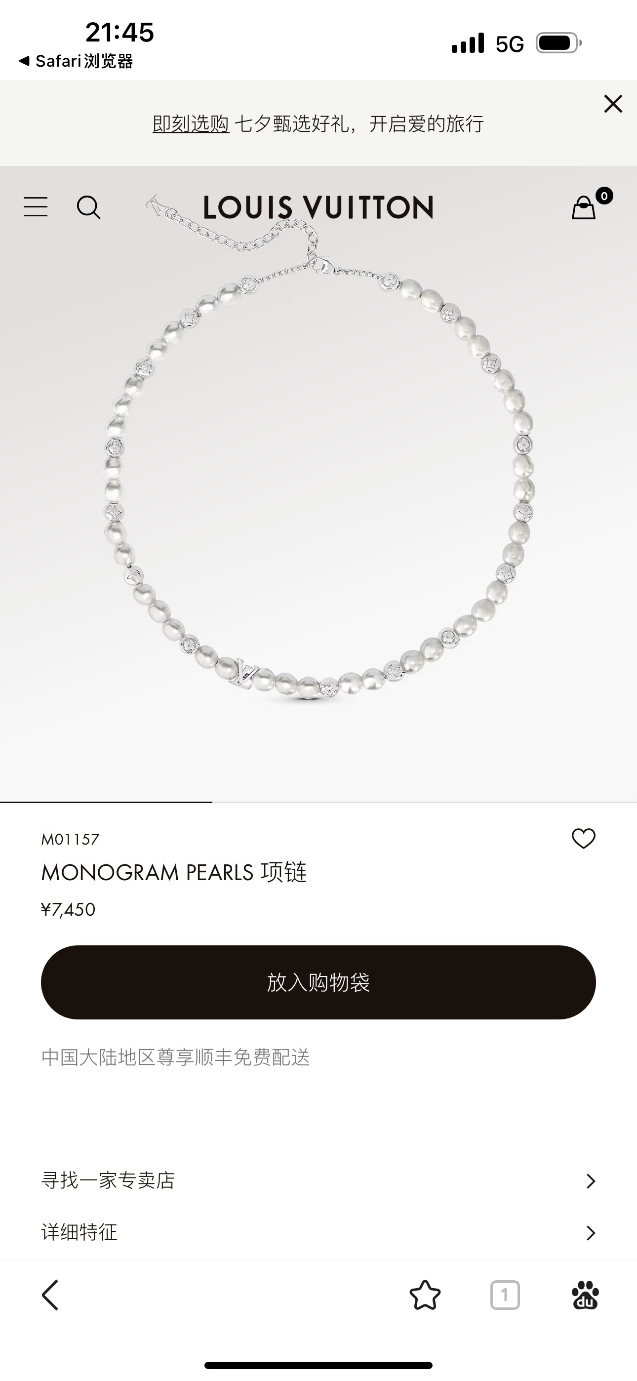 LV路易威登珍珠项链 配全套包装