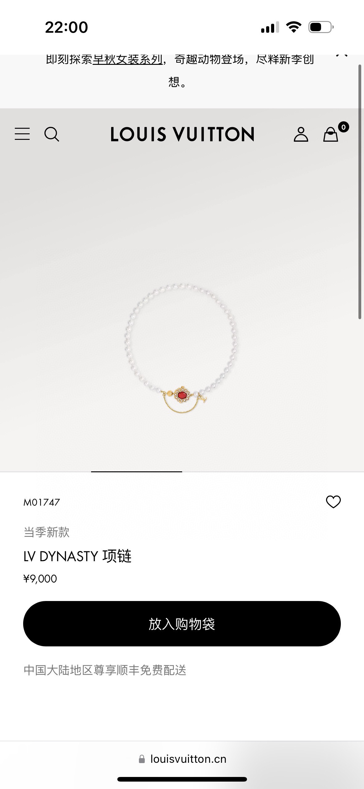 LV路易威登红宝石珍珠项链 配全套包装