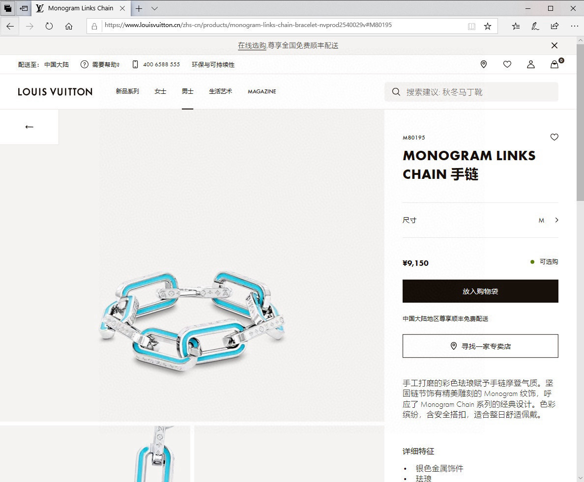 LV路易威登长方块串接手链 配全套包装