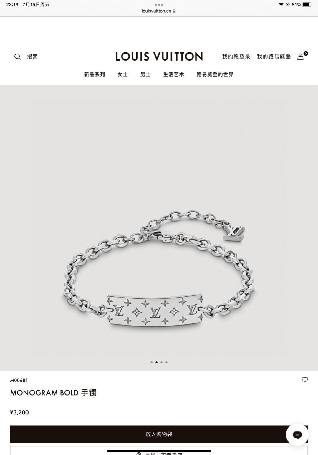 LV路易威登弯牌手链 配专柜全套包装