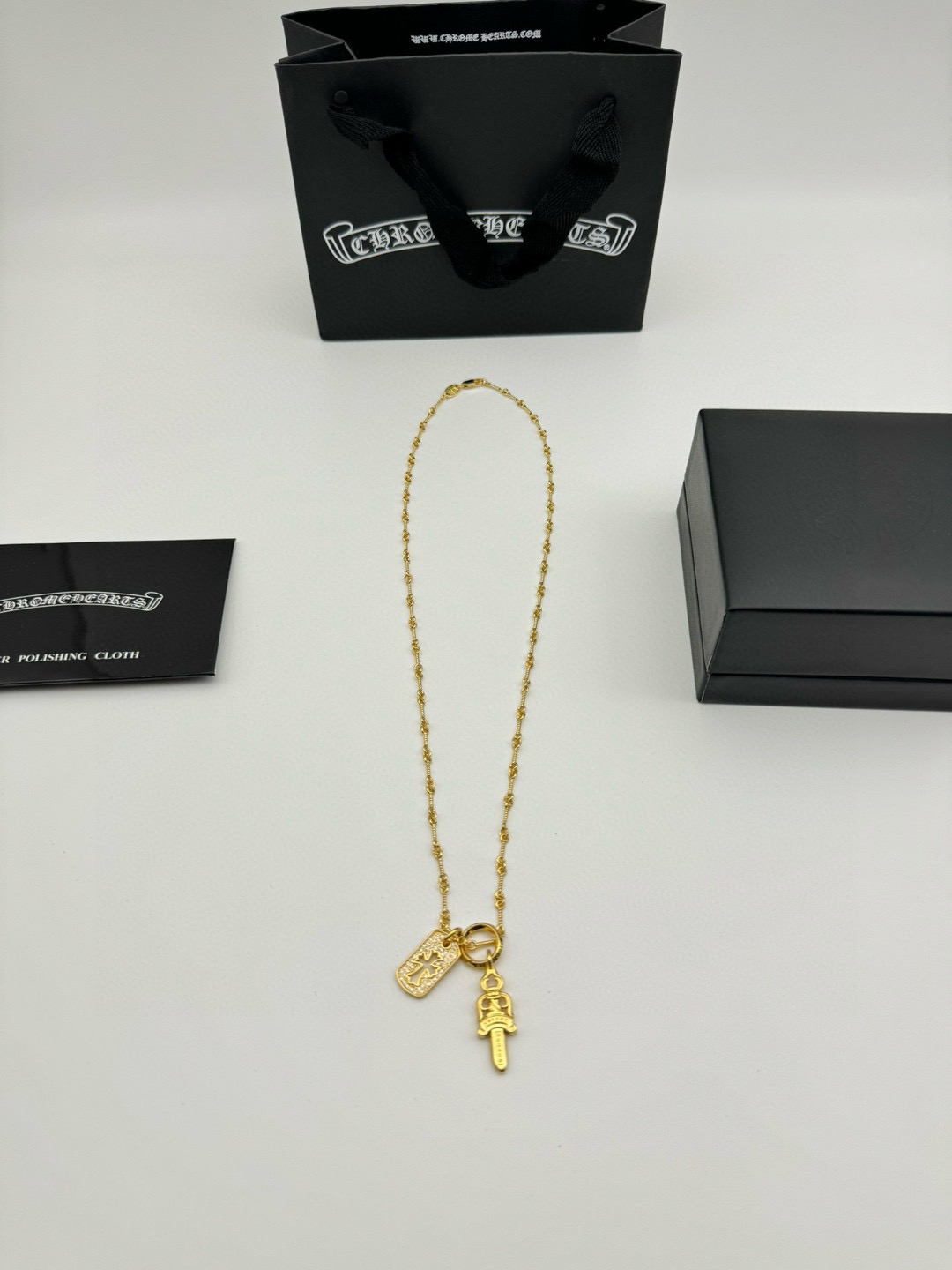 Chrome Hearts克罗心金色宝剑双吊牌项链 配全套包 429325