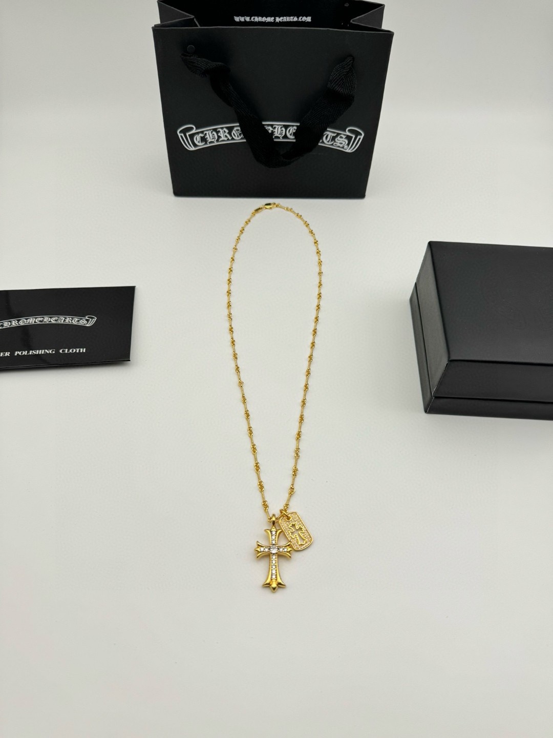 Chrome Hearts克罗心金色十字架双吊牌项链 配全套 429326