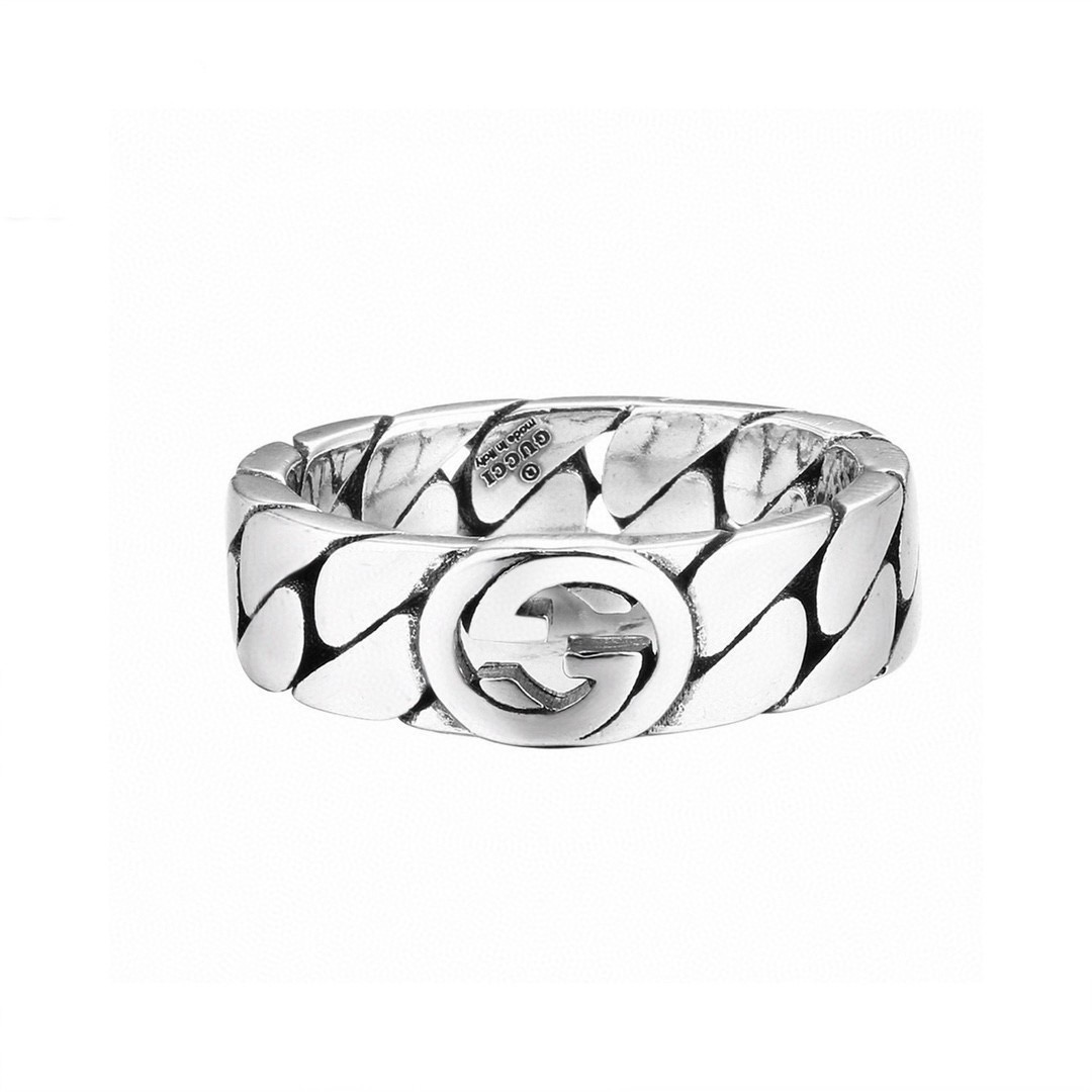 Gucci古驰银色互扣锁链戒指 泰银版本