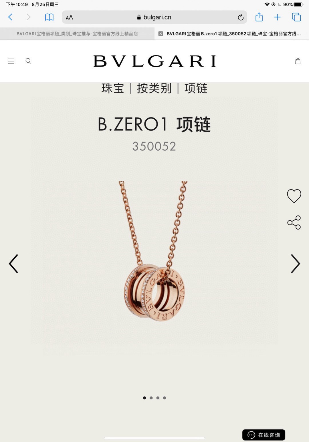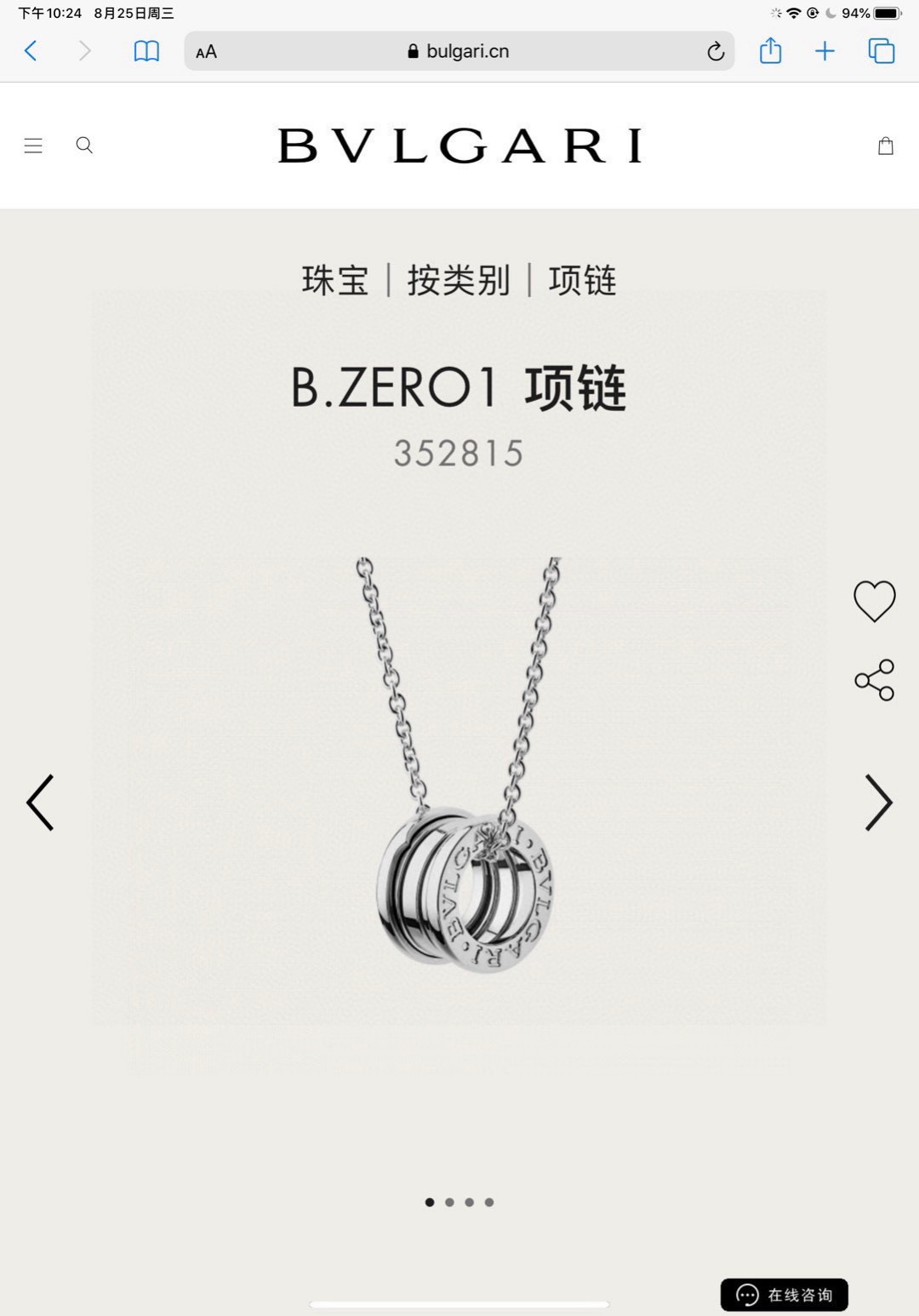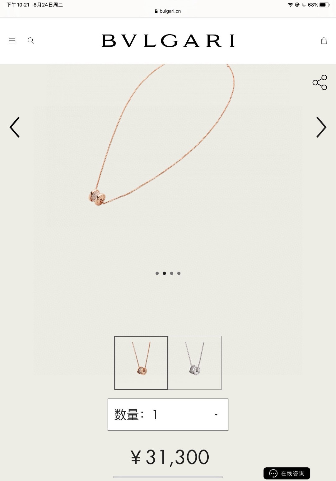 BVLGARI宝格丽满钻小蛮腰项链