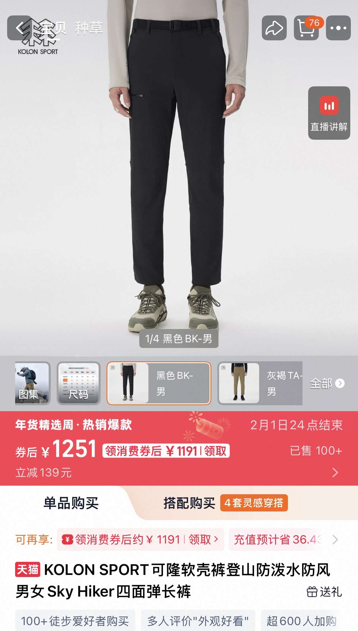 KOLON SPORT可隆2026男士春夏火山岩长裤防风防泼 492708