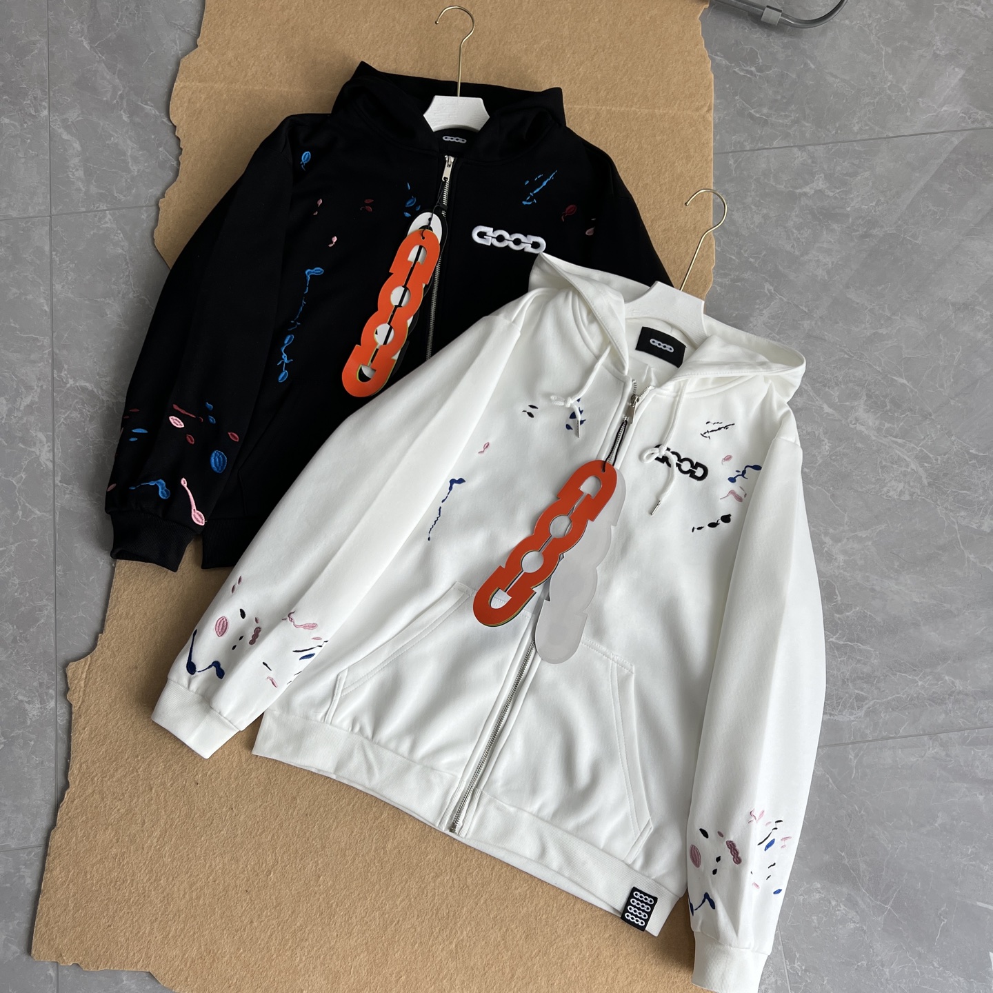 GOOD官网款秋冬新品糖果刺绣泼墨连帽开衫拉链帽衫外套男女同 492273