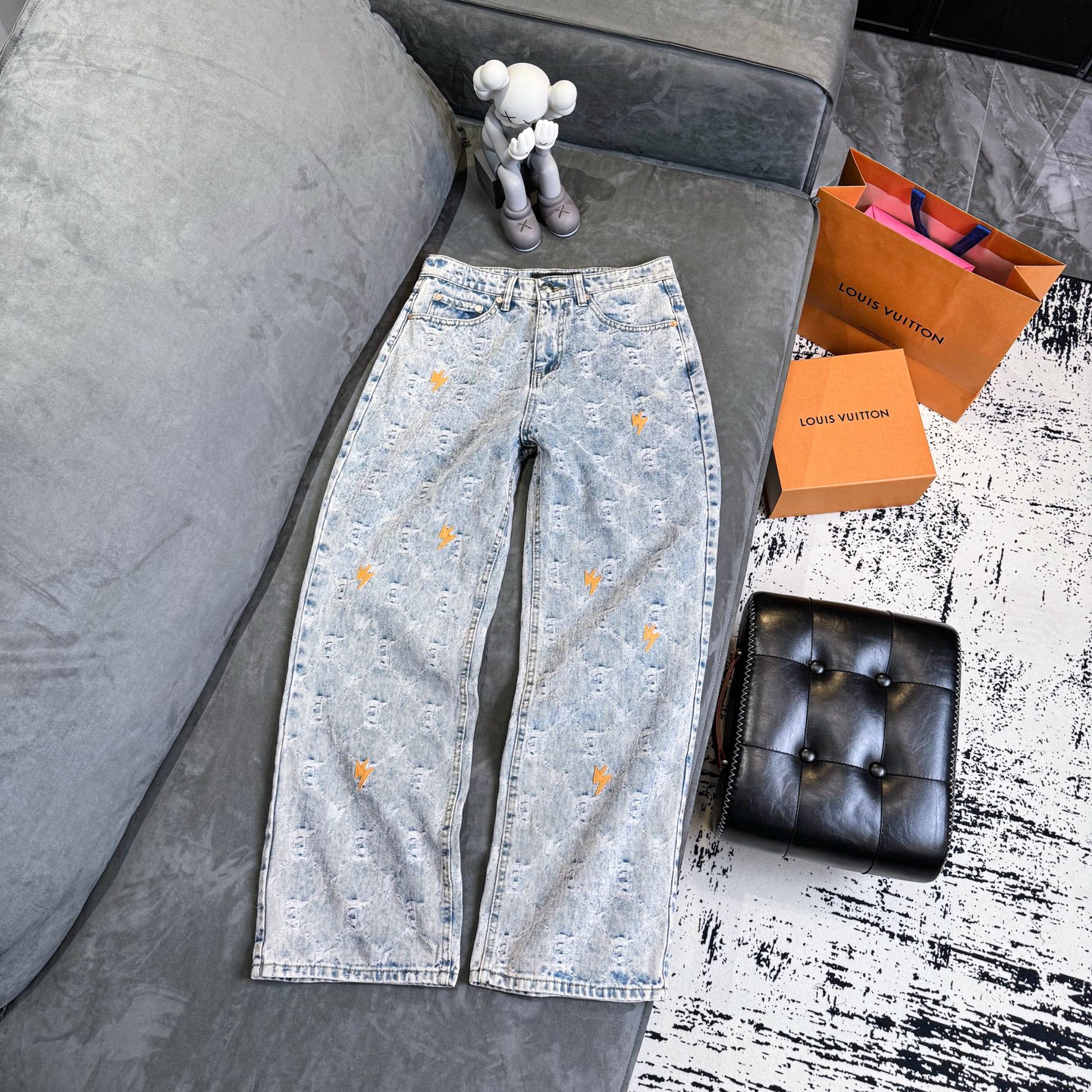 Amexnocap网红款提花满印闪电牛仔裤同款男女同款