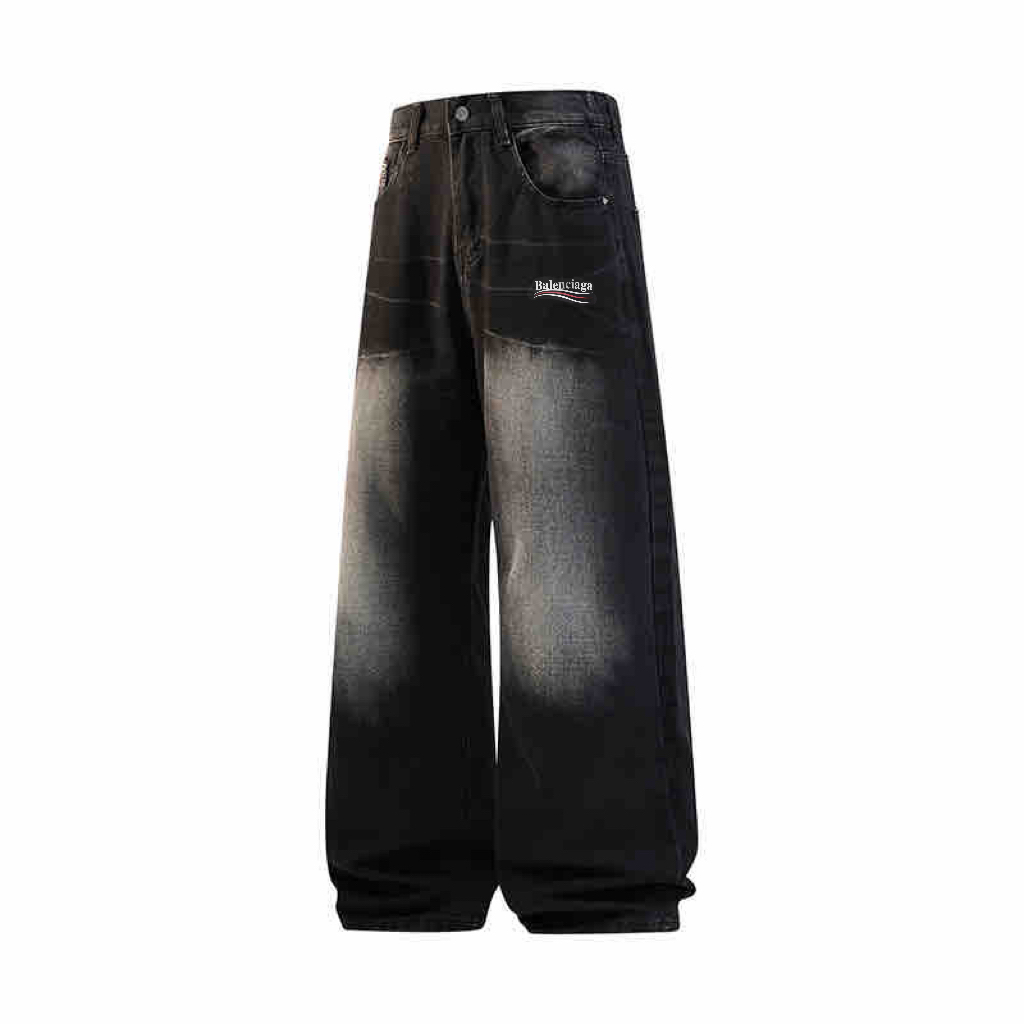 Balneciaga 巴黎世家水洗褪色做旧竹节纹牛仔裤