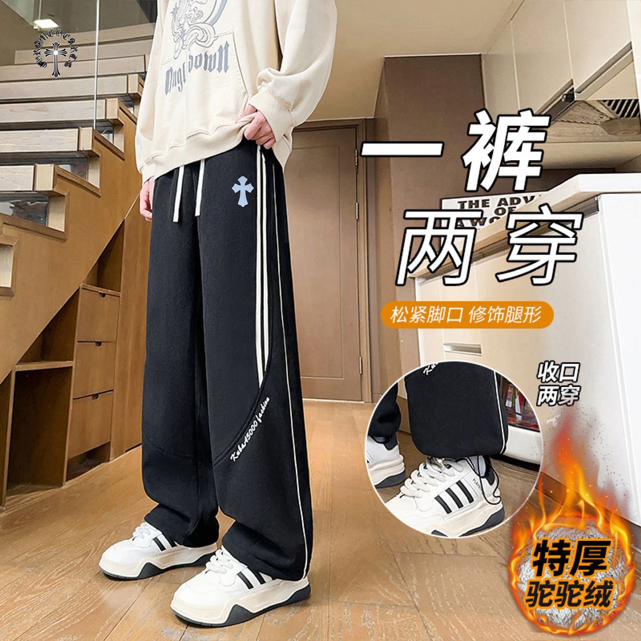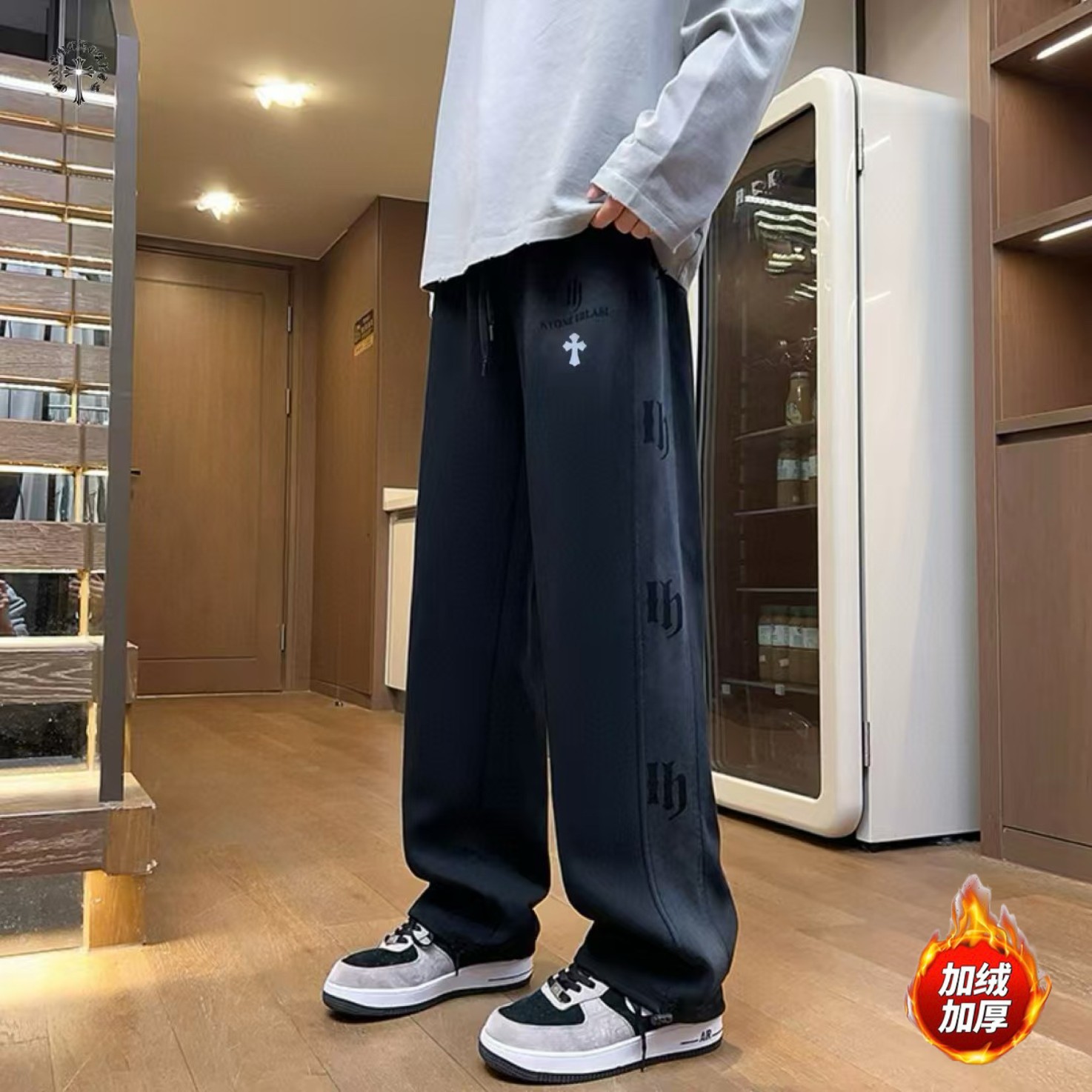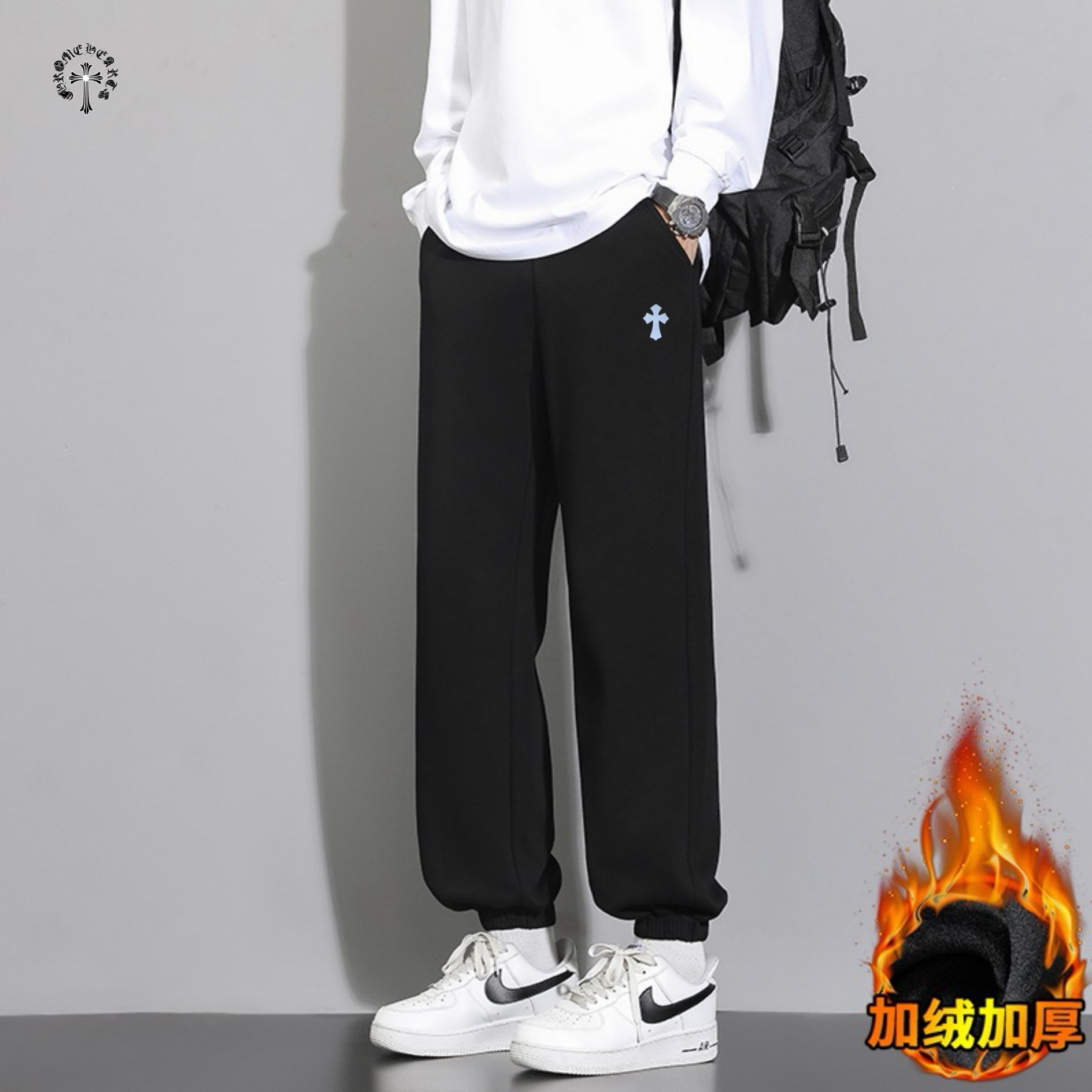 大鹅奥粒绒刺绣卫裤 锁腿卫裤休闲长裤