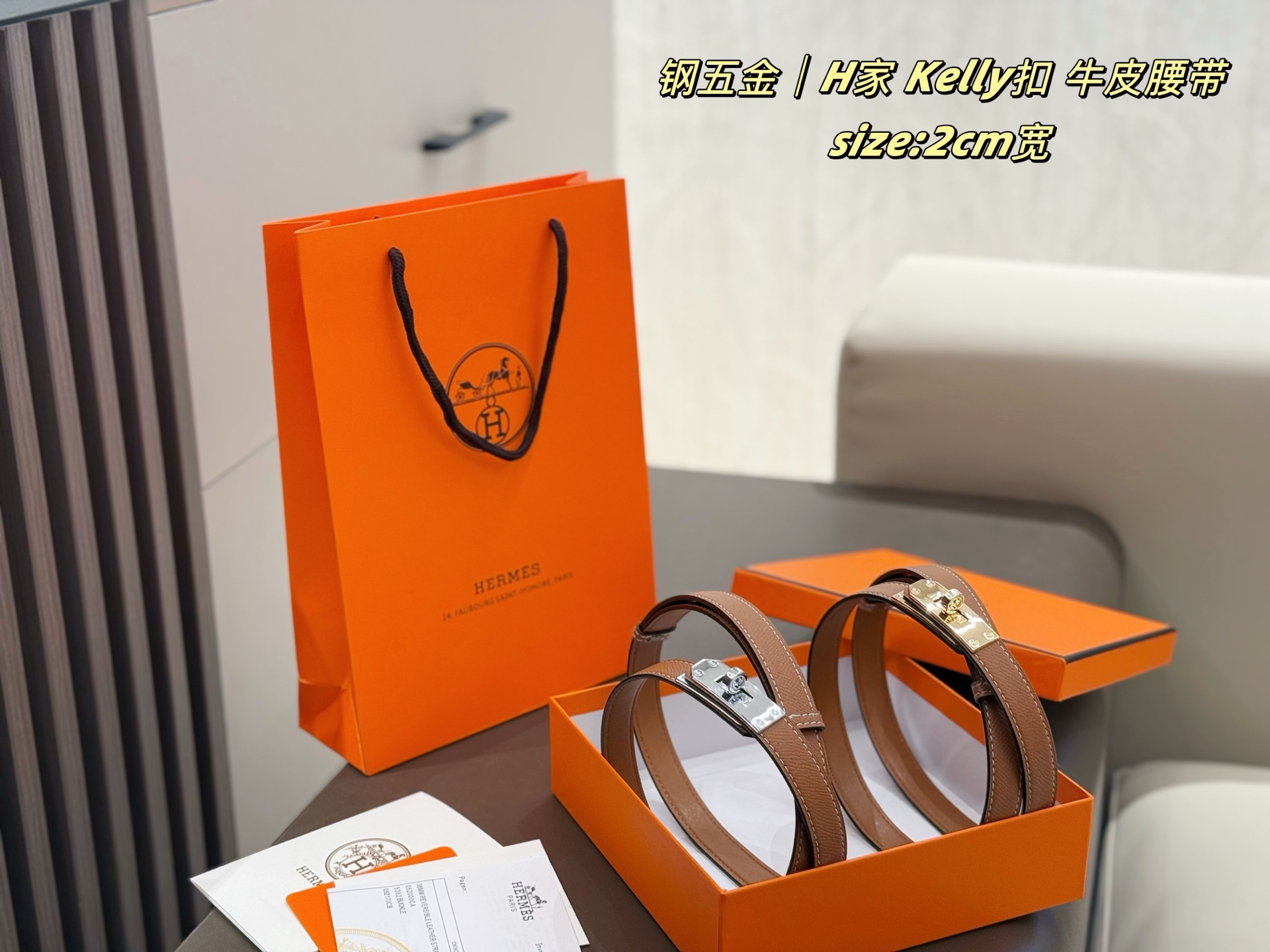 Hermes Kelly扣 牛皮腰带