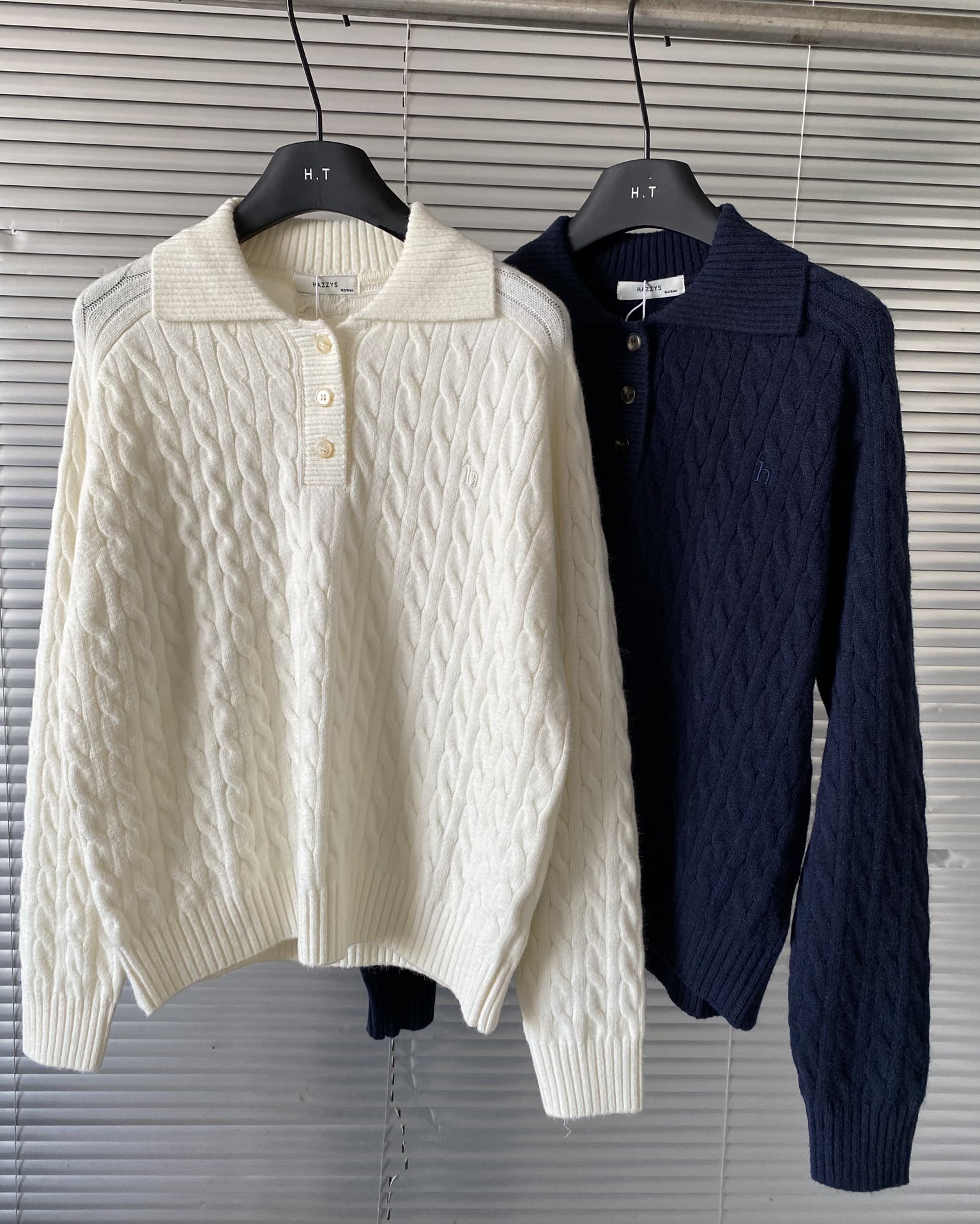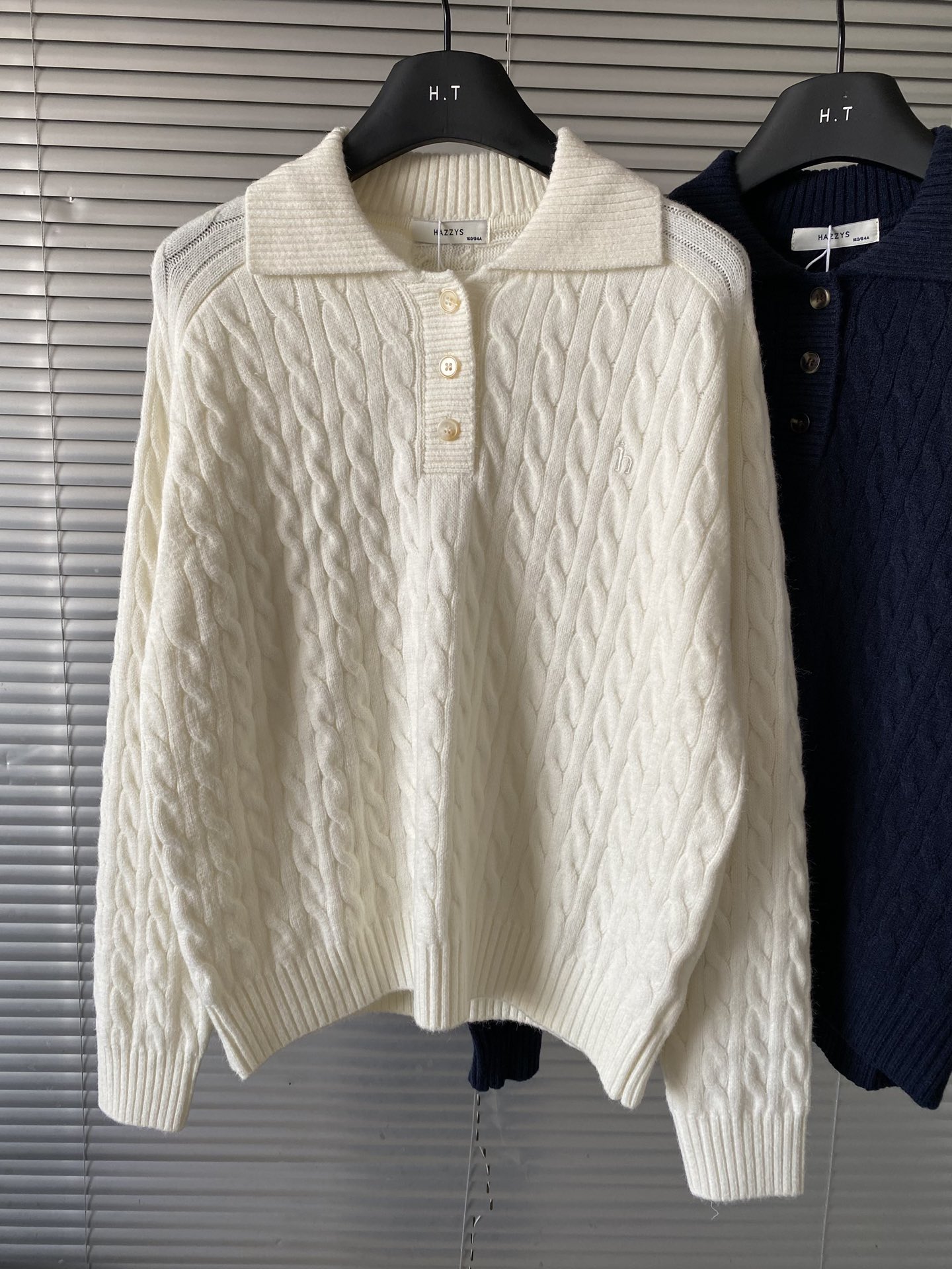 上新 宋佳明星同款 Hazzys哈吉斯翻领绞花毛衫女2025 373117