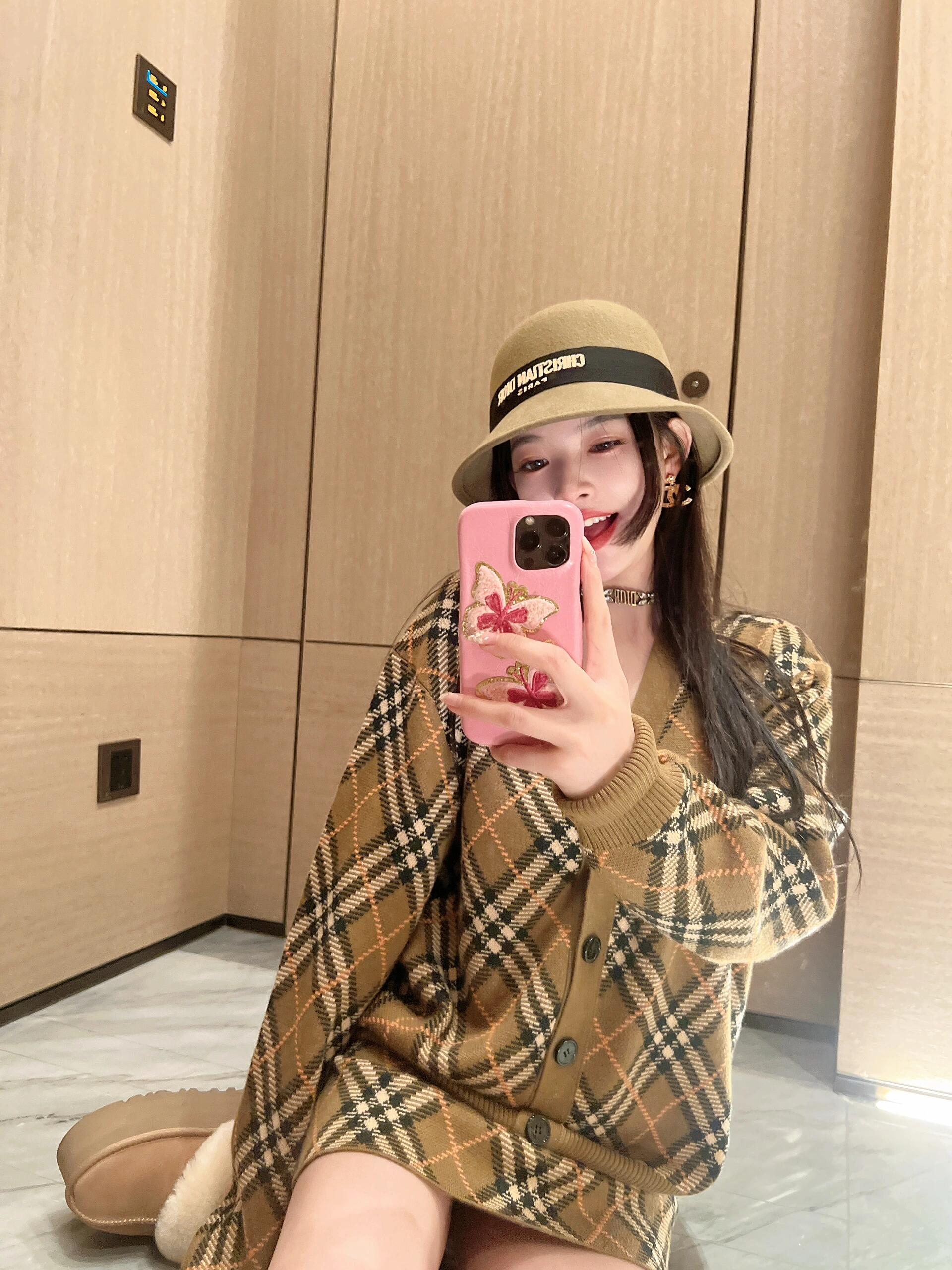 巴宝莉 Burberry经典款斜条纹格子V领开衫毛衣外套