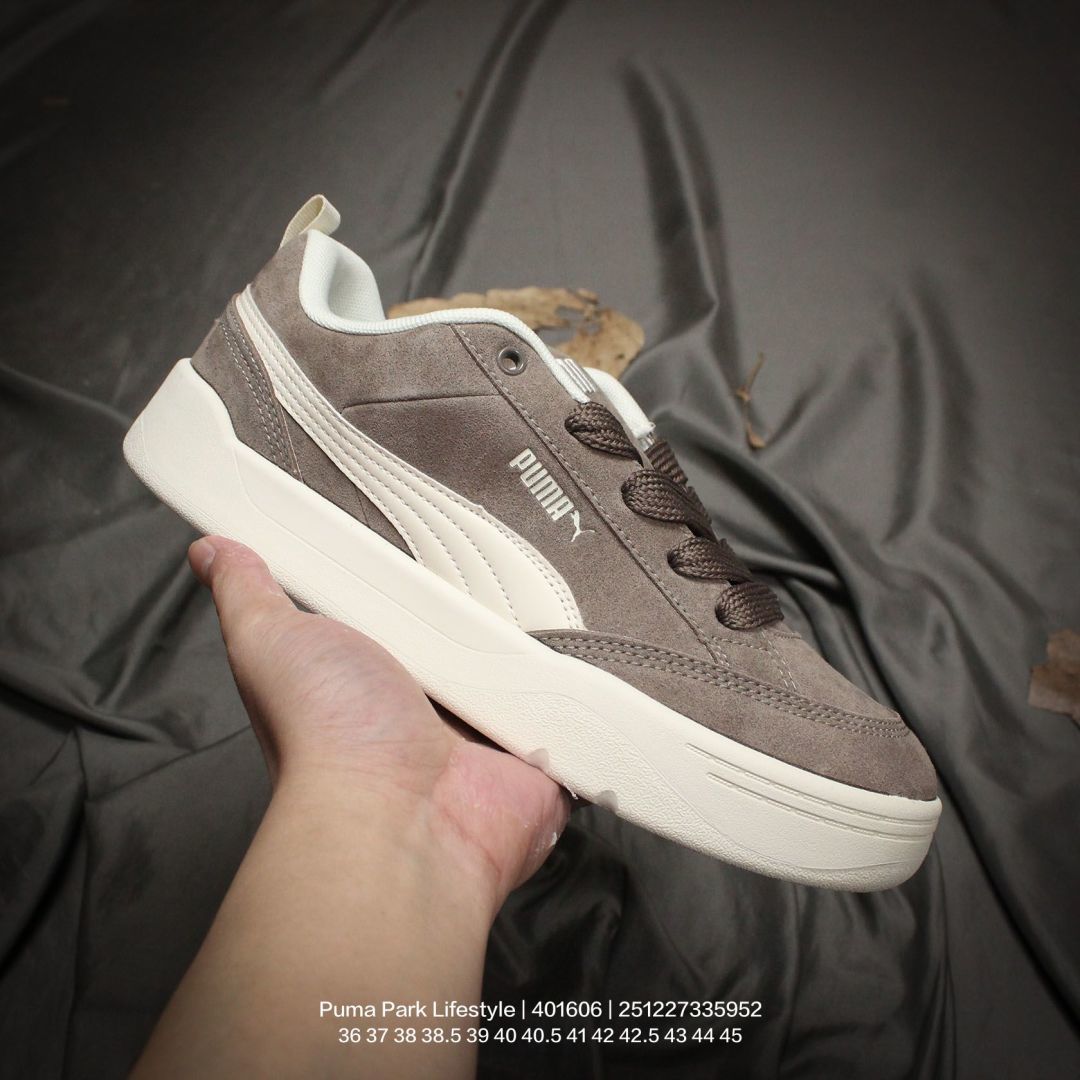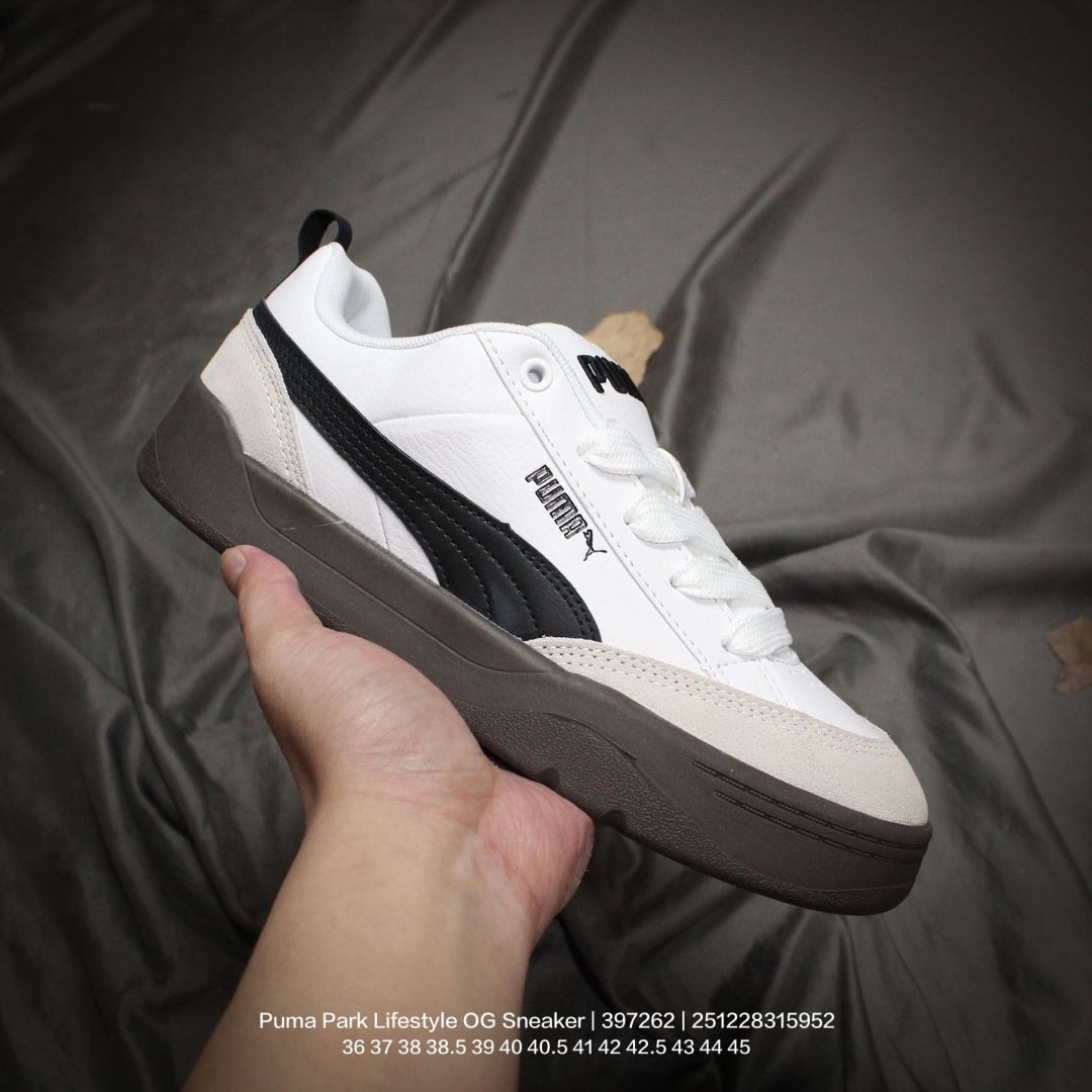 PUMA 彪马 原楦原纸版开发版型 采用硬质荔枝纹牛剖革组合 975158
