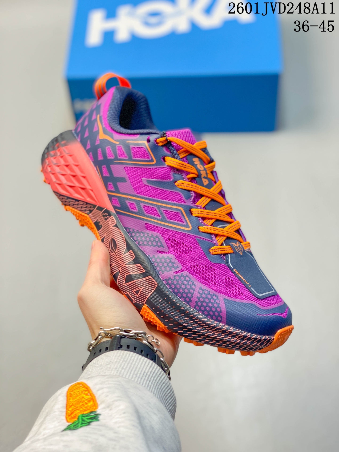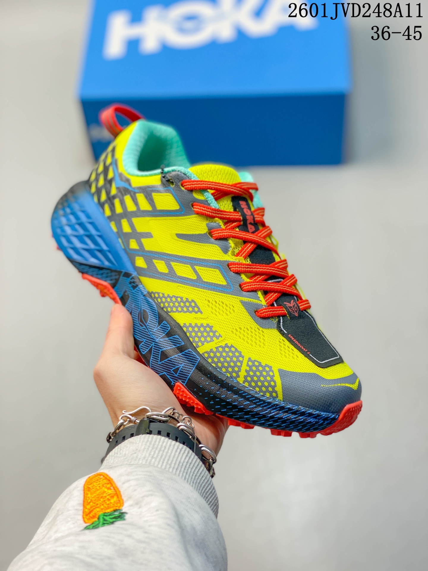 霍卡 男女鞋真标半码制 采用轻量针织织物与无痕压胶工艺鞋面材 181621
