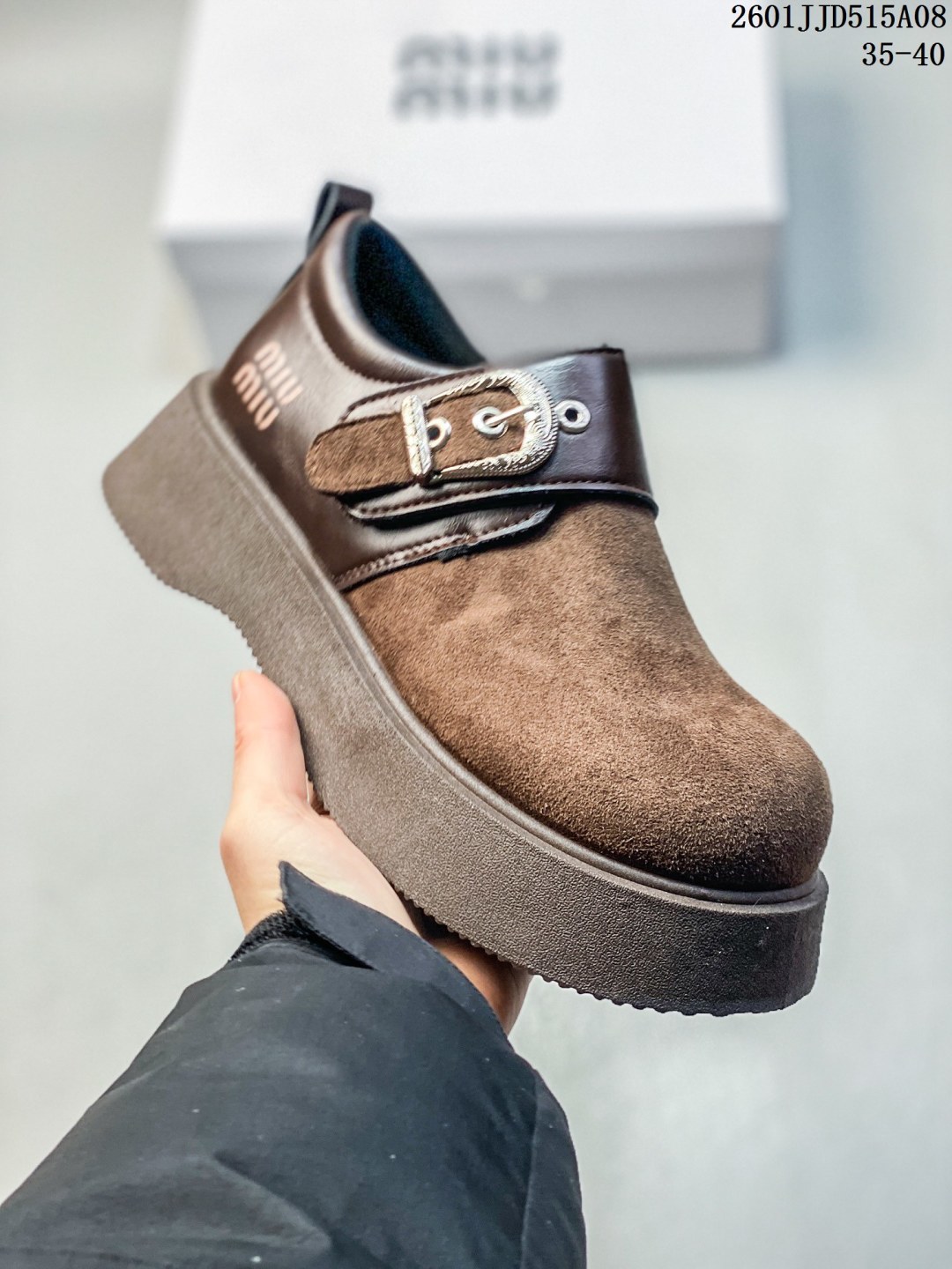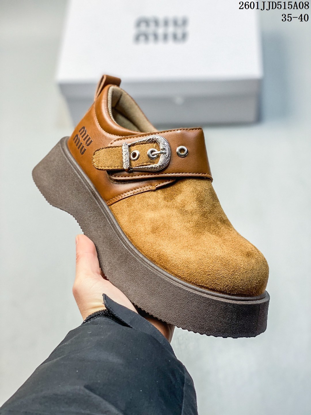 MIUMIU复古拼接全包2026早春新款一脚蹬懒人鞋厚底乐福 148111
