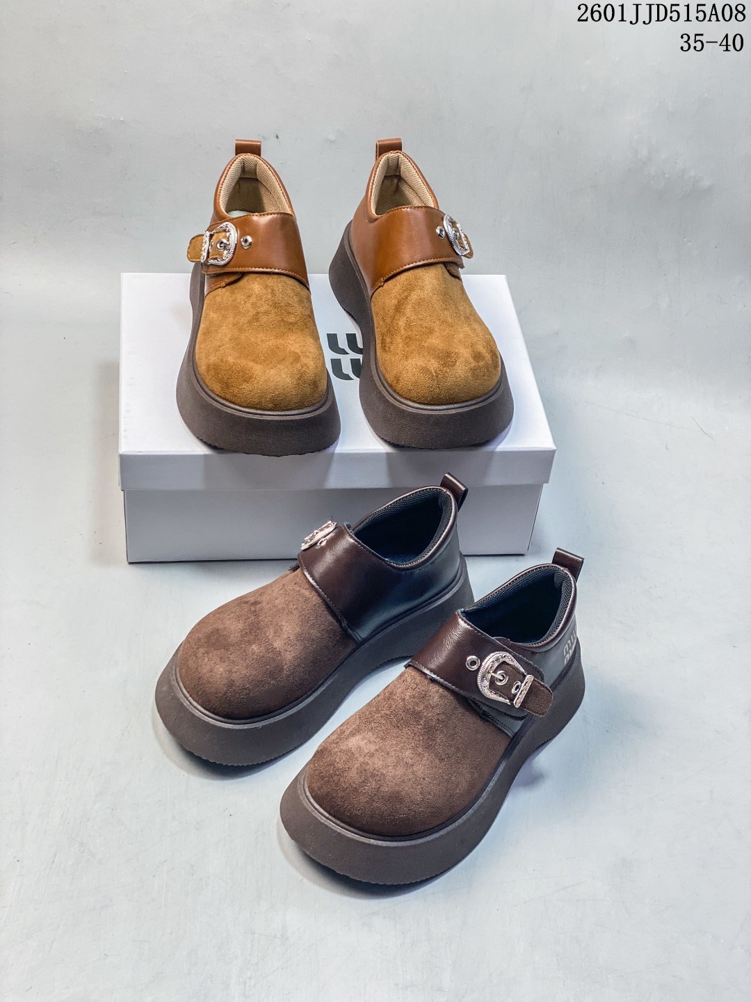 MIUMIU复古拼接全包2026早春新款一脚蹬懒人鞋厚底乐福 148112