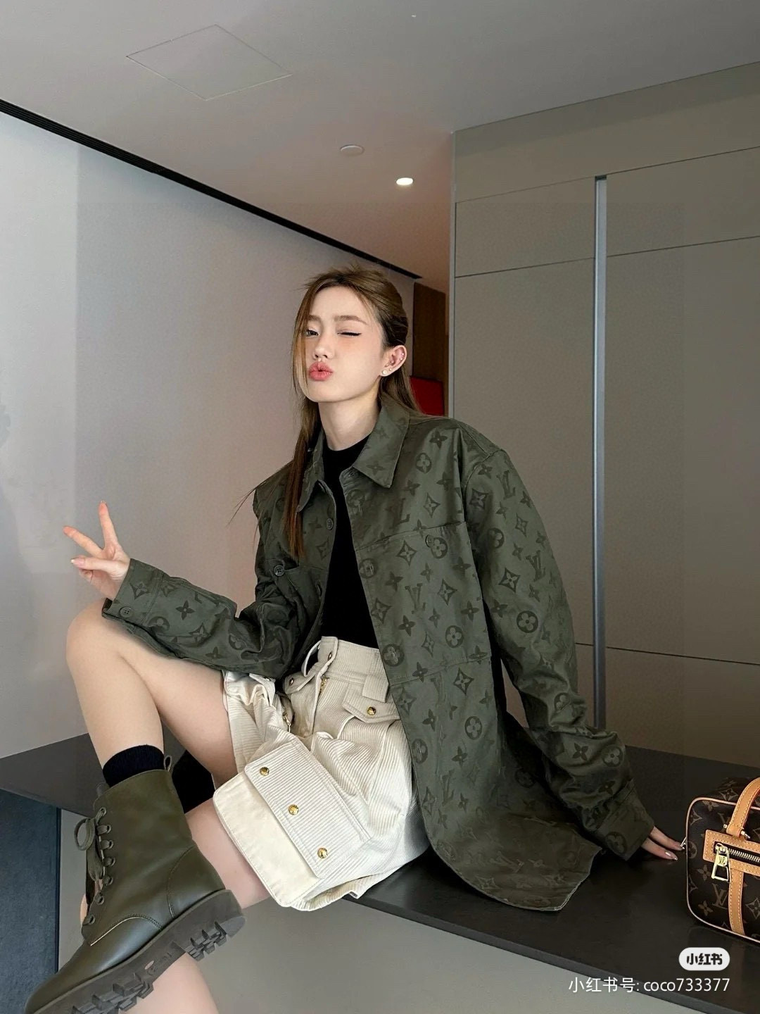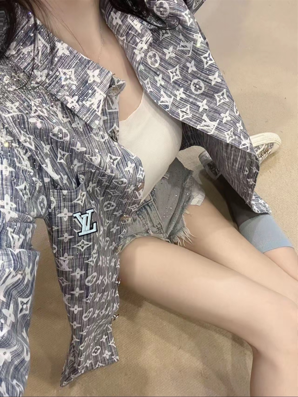 Louis Vuitton路易威登新款扎染满印logo麻料衬 492697