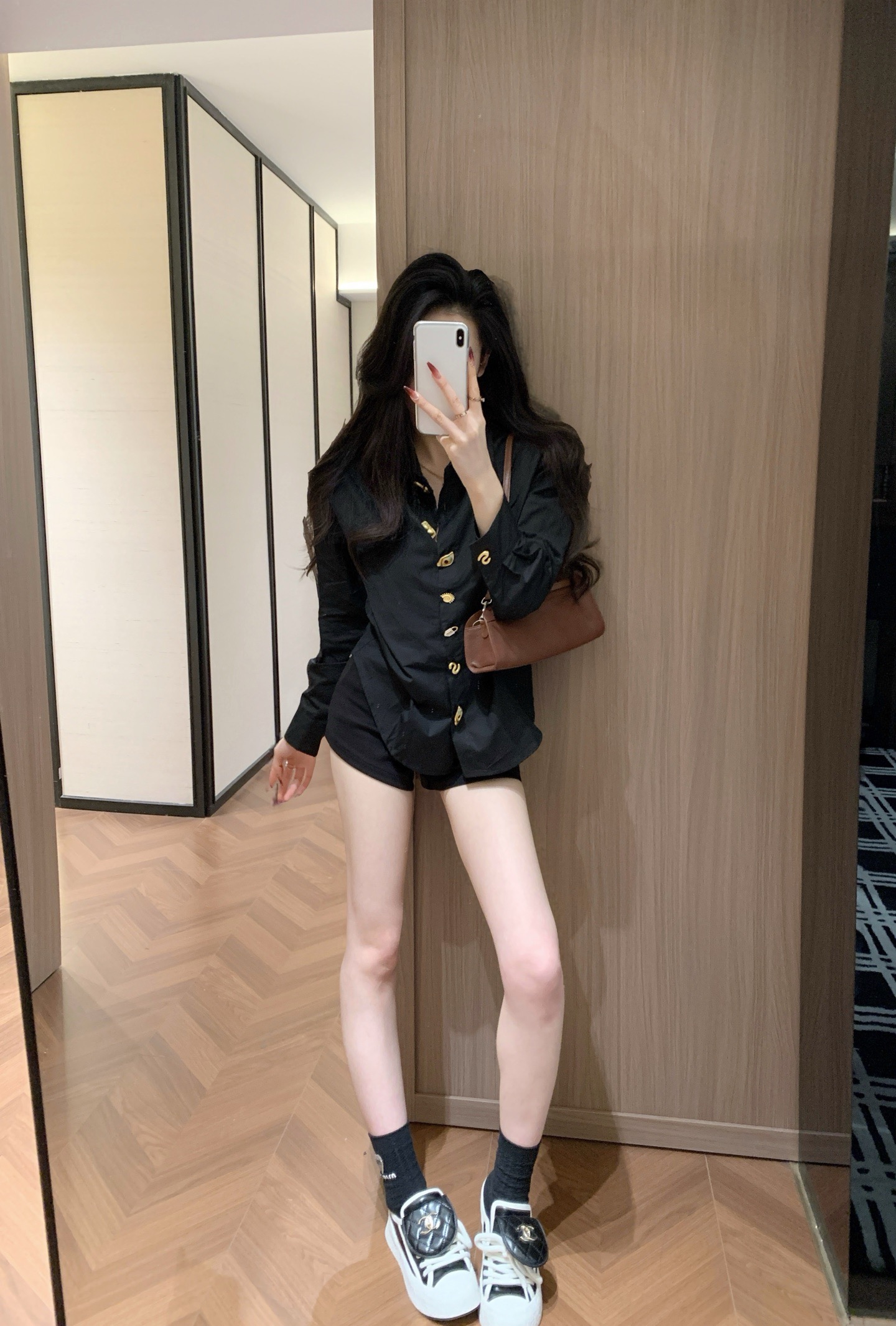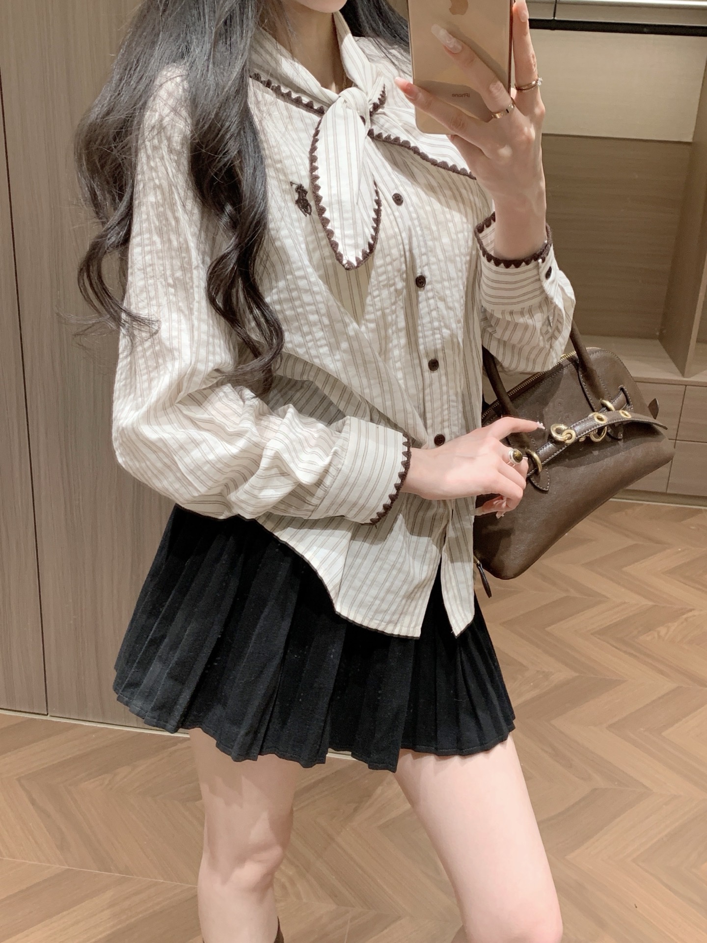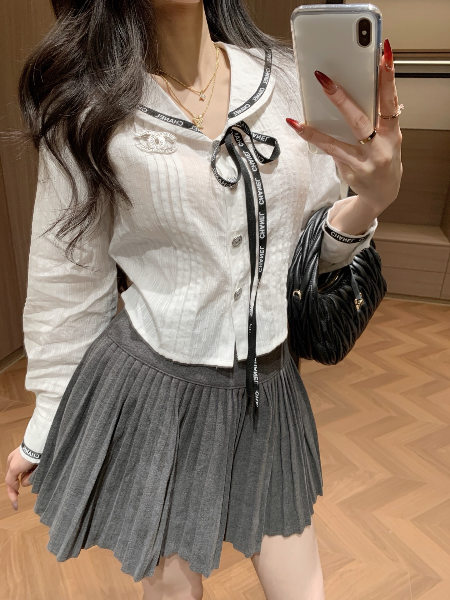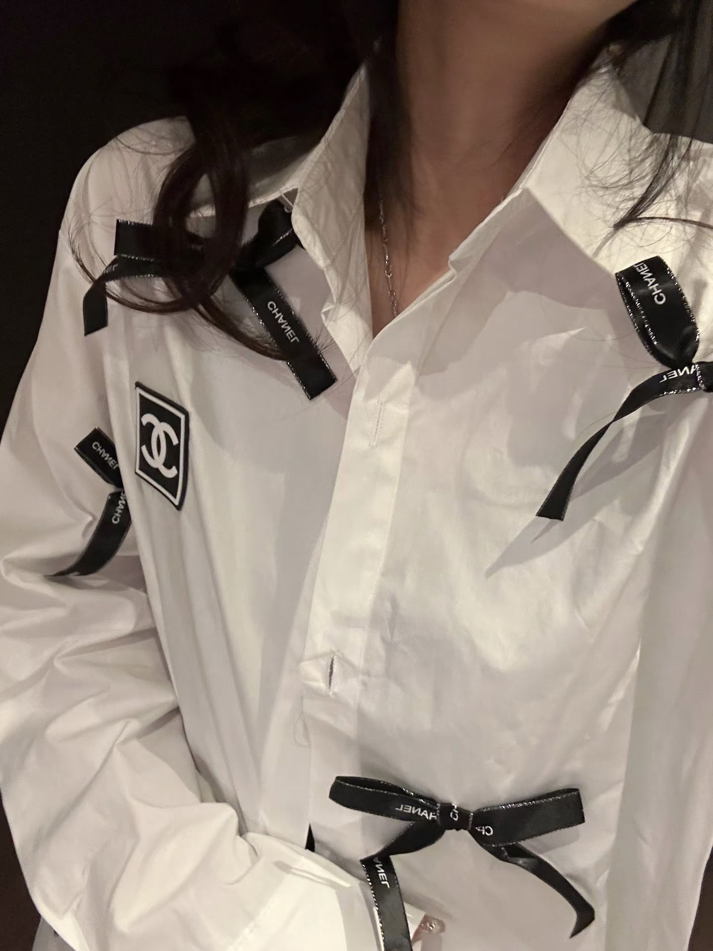 Chanel香奈儿26SS新款黑色蝴蝶结纽扣衬衫外套