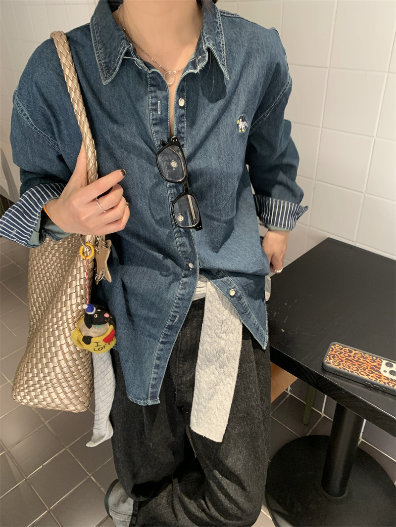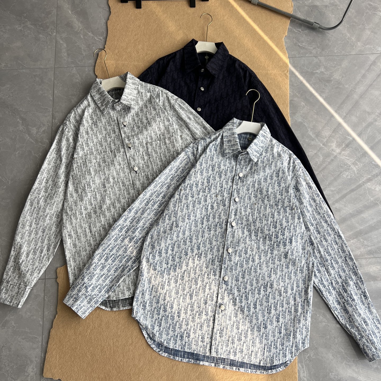 Dior迪奥 藏蓝色暗纹老花字母提花logo牛仔衬衫 慵懒风 492270