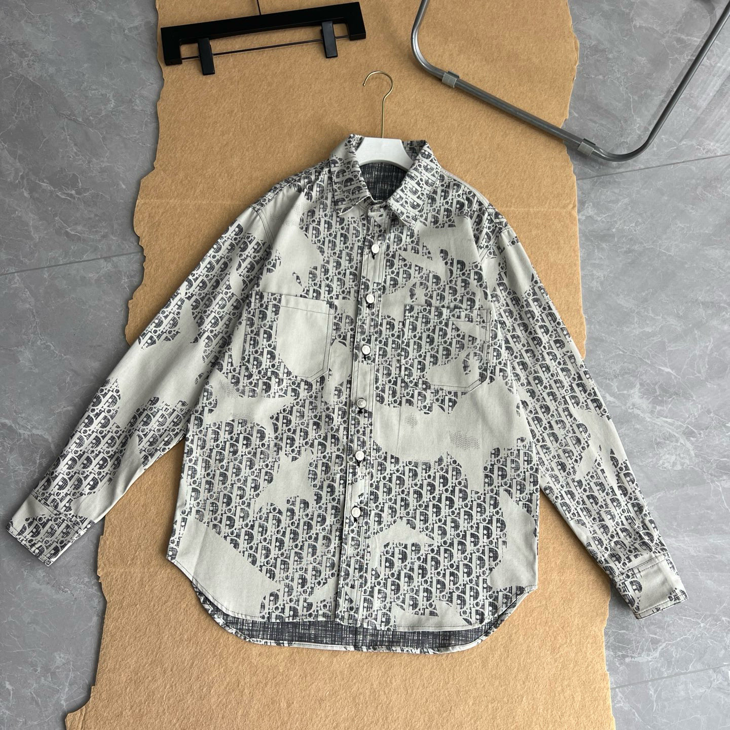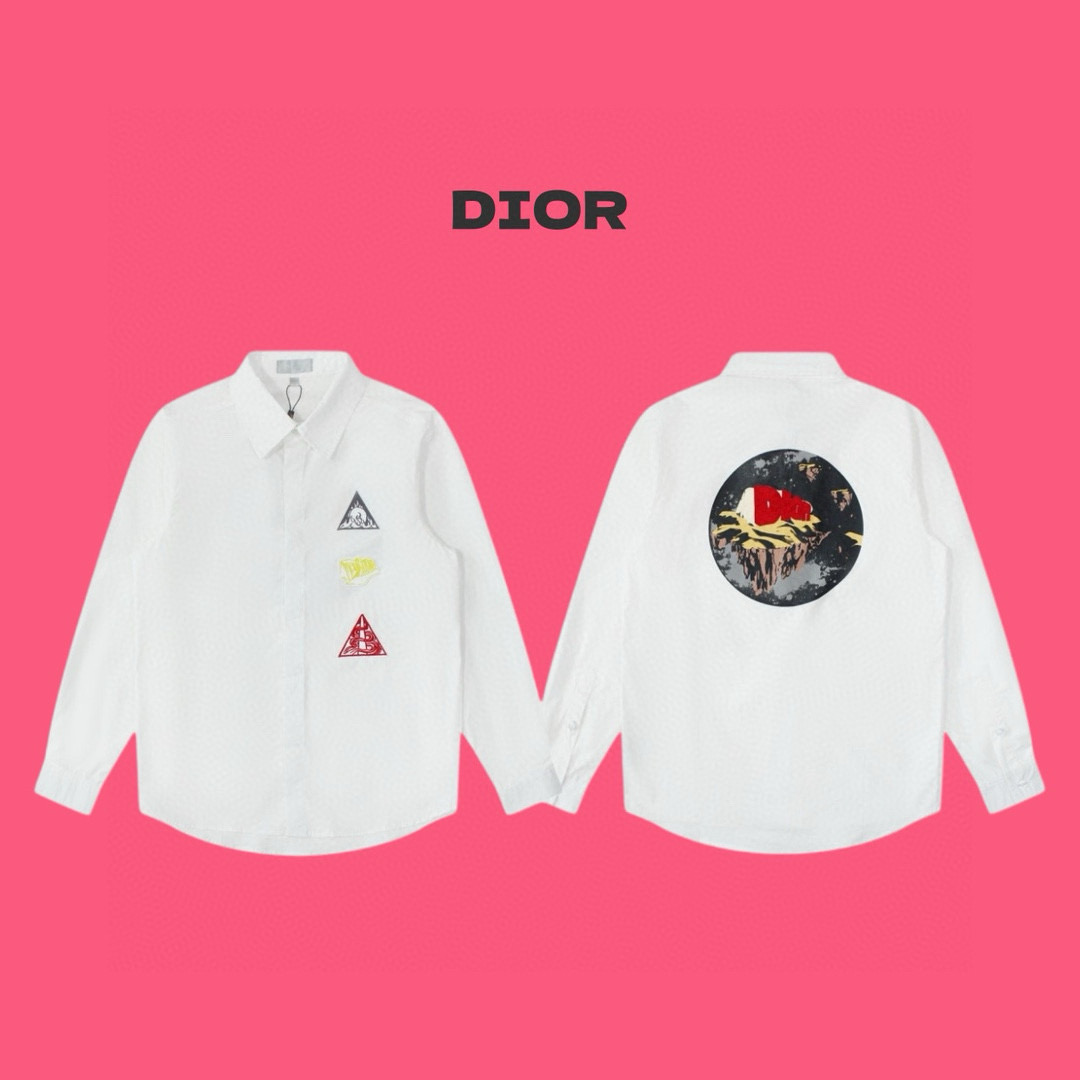 Dior迪奥前后字母老花印花烫钻翻领长袖衬衫