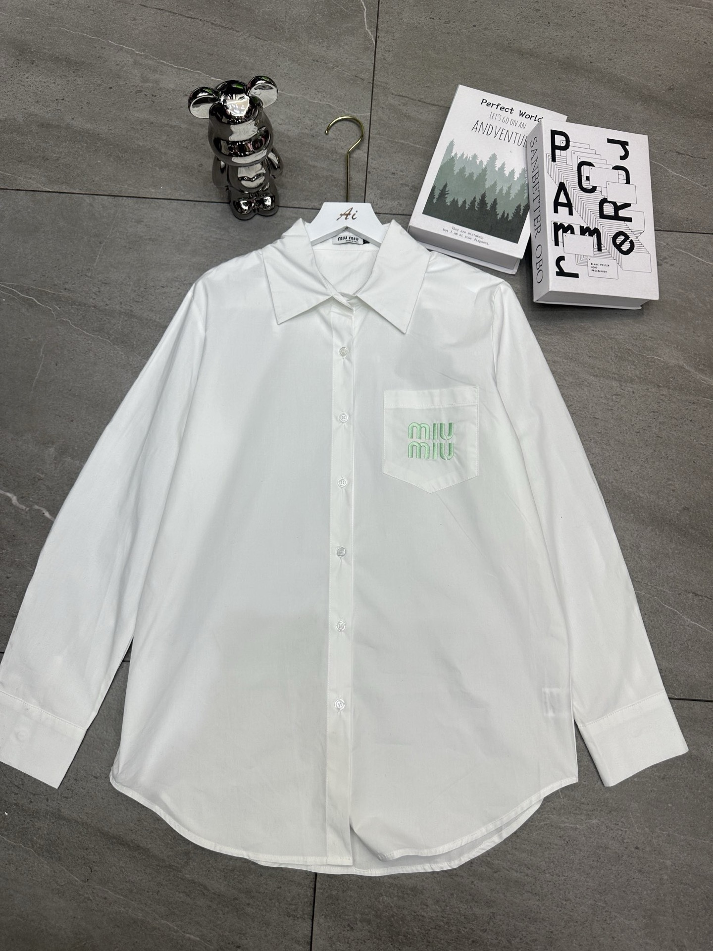 Miumiu缪缪字母刺绣印花翻领长袖衬衫