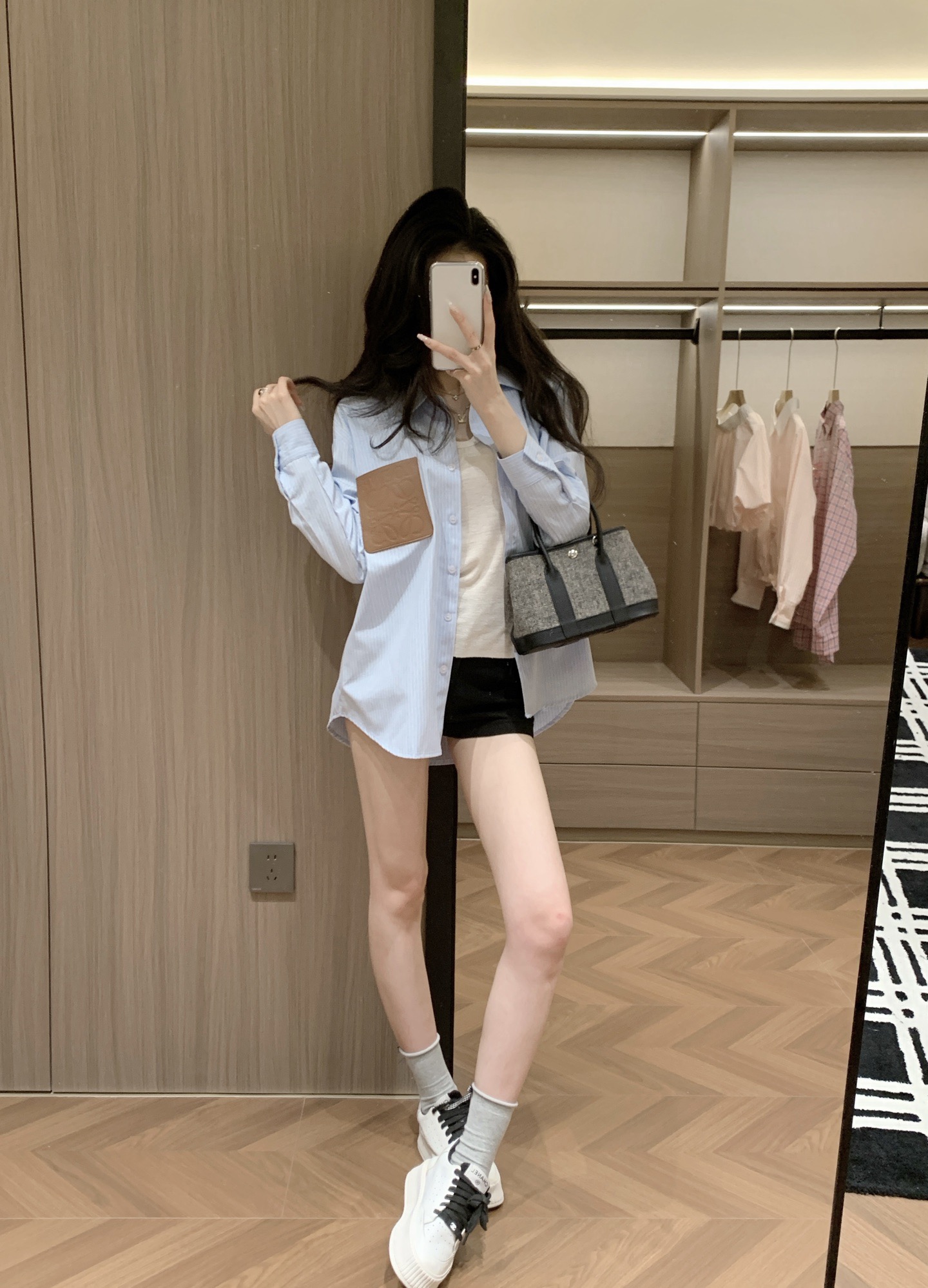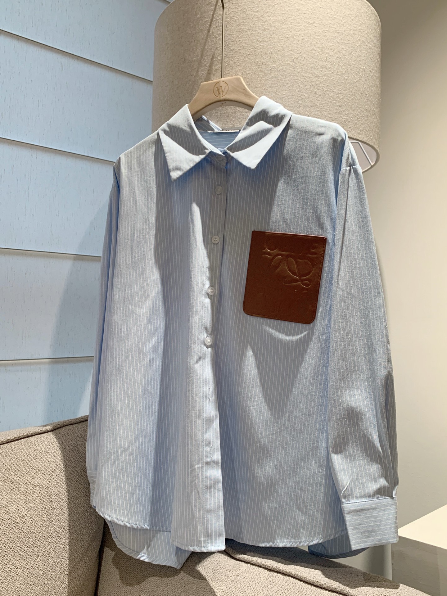 Loewe罗意威定制字母logo皮牌条纹衬衫