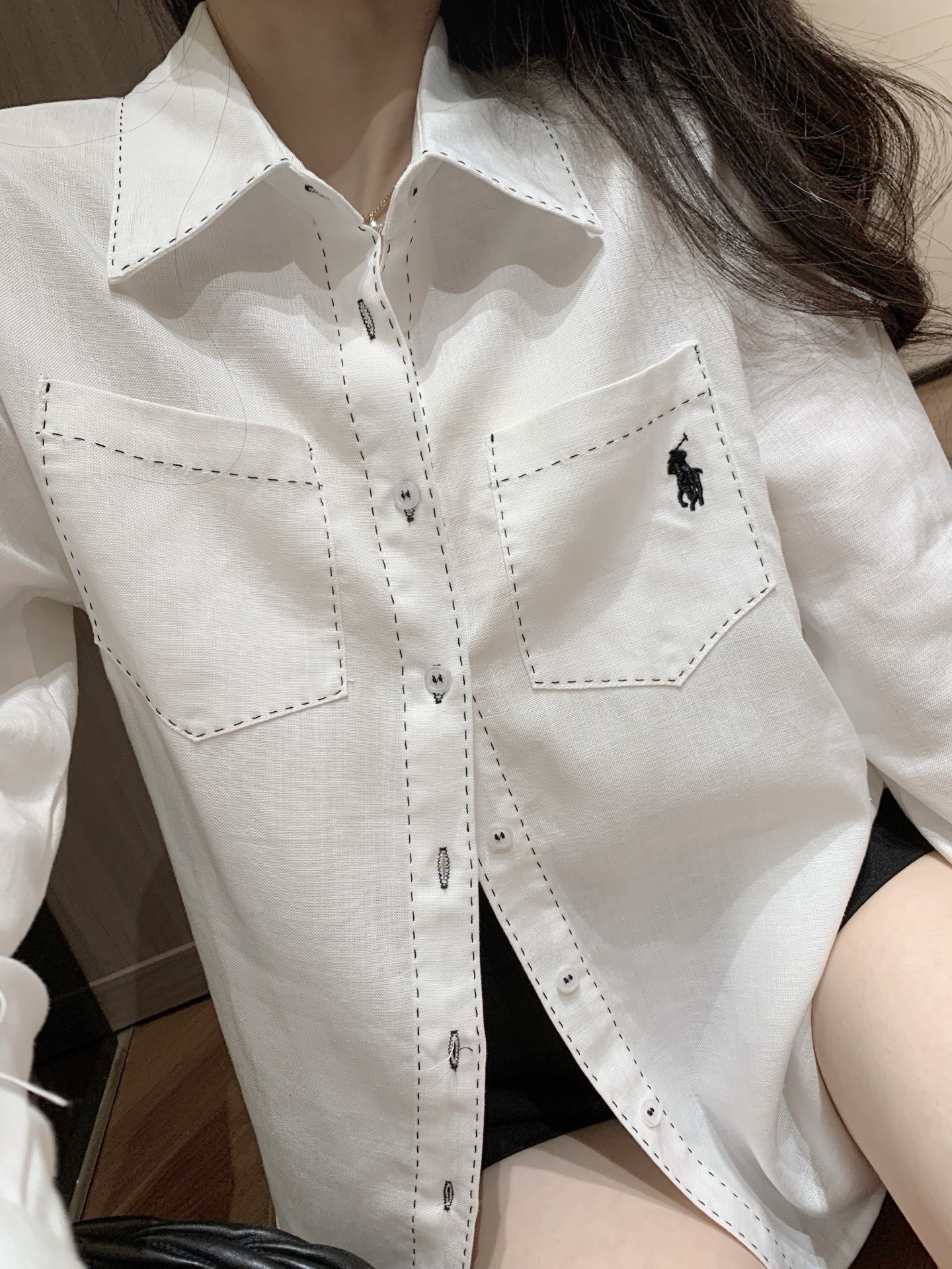 Ralph Lauren 拉夫劳伦RL小马刺绣双口袋黑色明线 489804