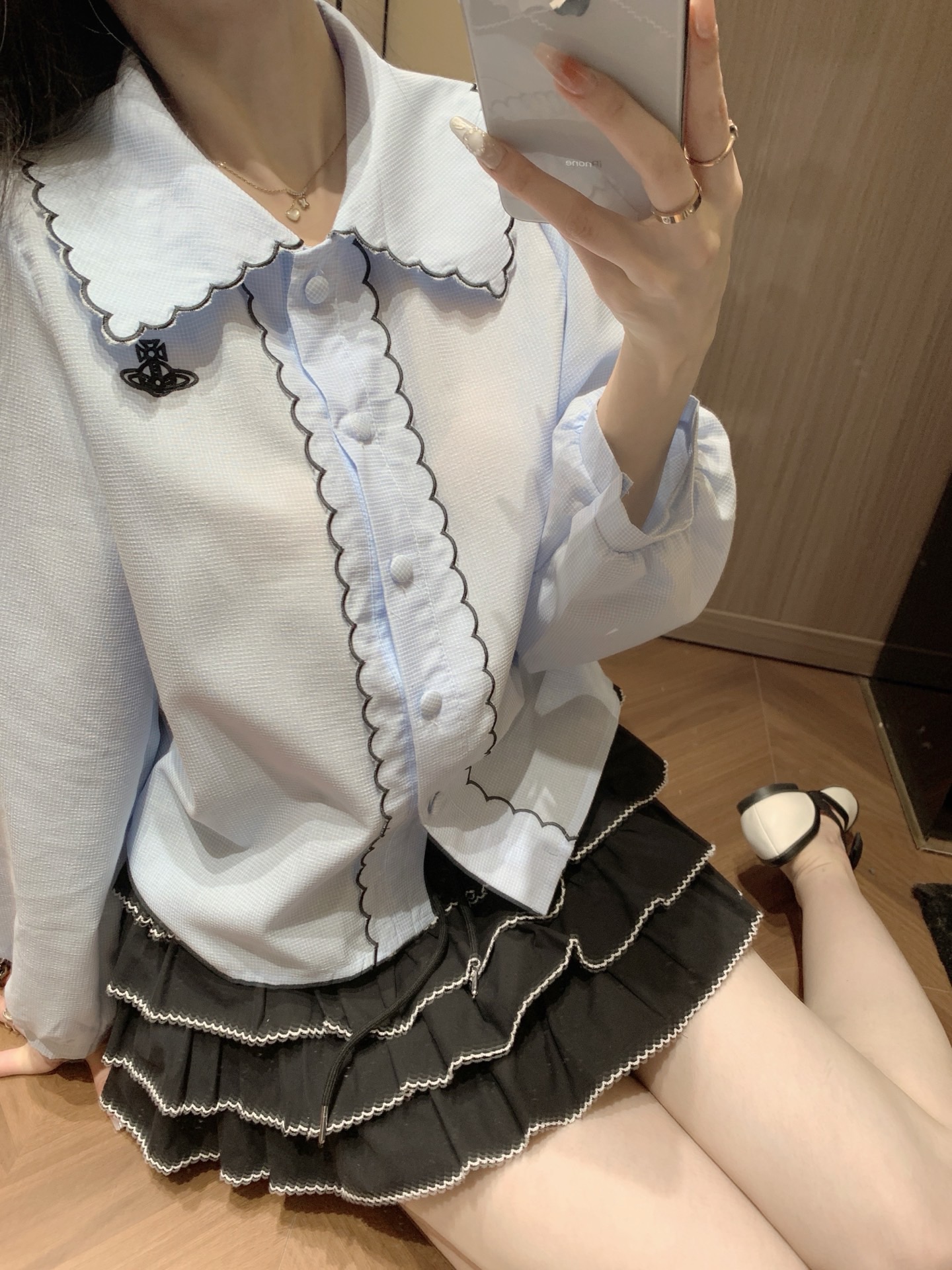 Vivienne Westwood西太后土星刺绣波浪边大翻领 489807
