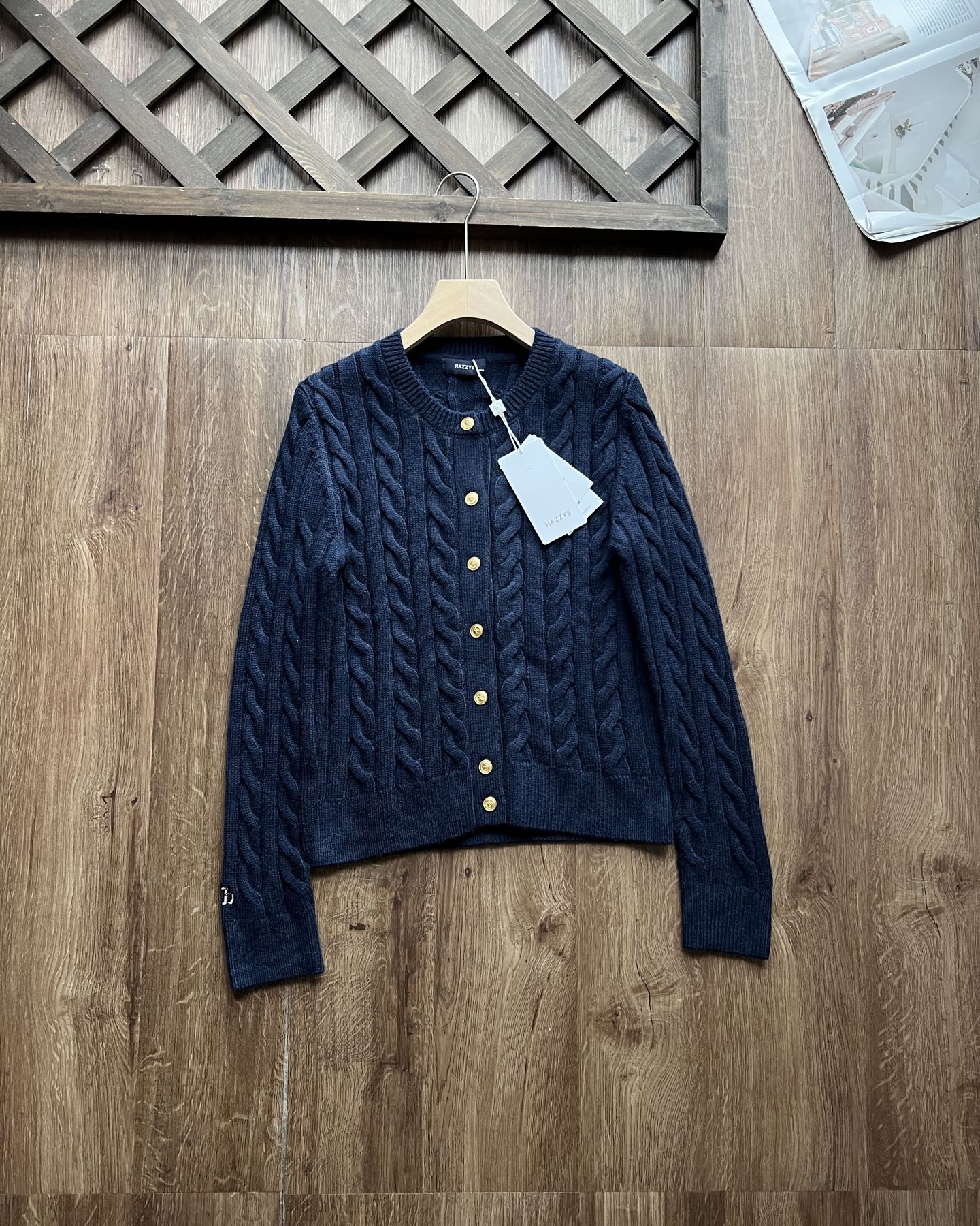 Hazzys哈吉斯绞花开衫女秋冬圆领休闲通勤针织衫时尚羊毛上 321977