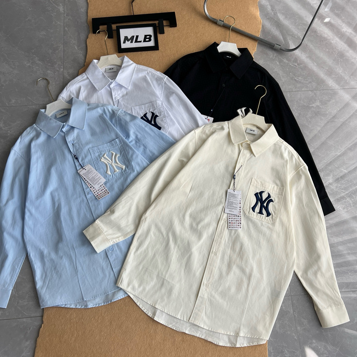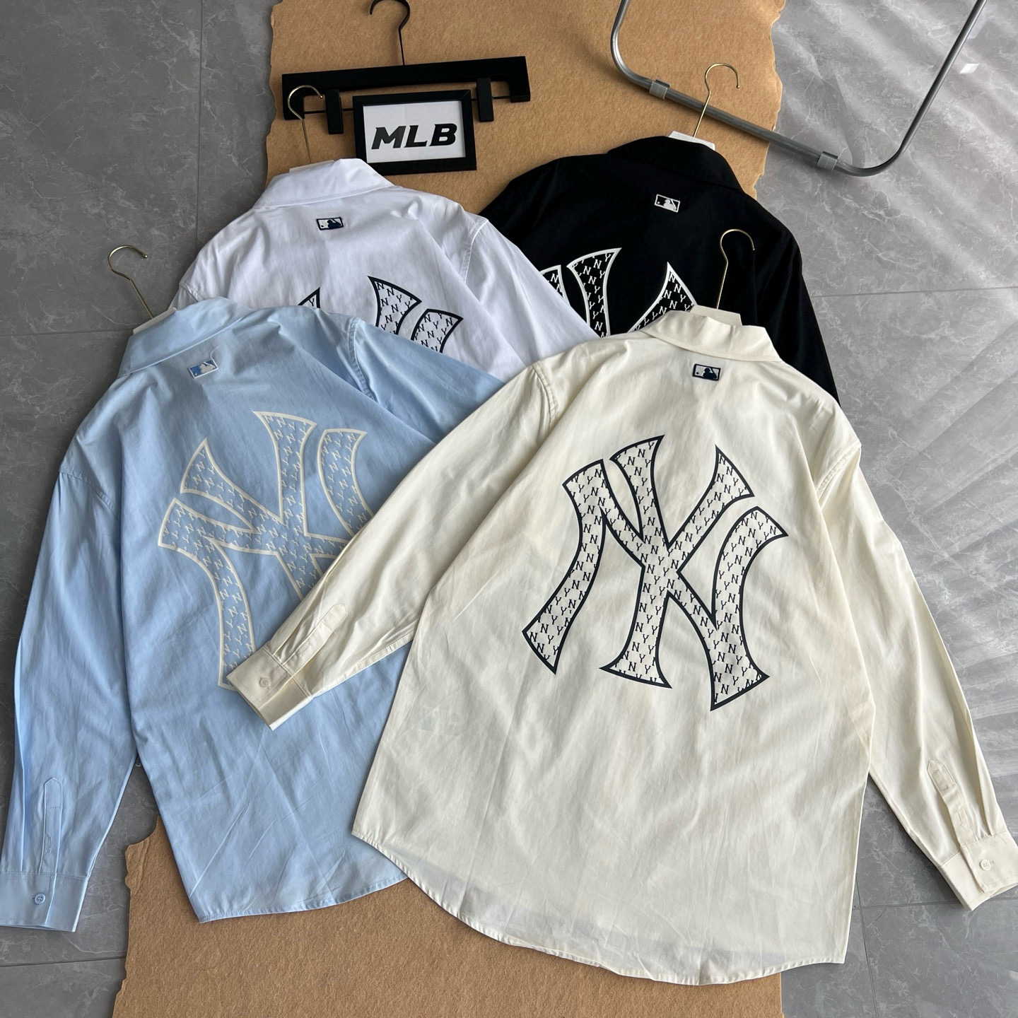 2025新款MLB NY胸前口袋贴布刺绣Logo衬衫