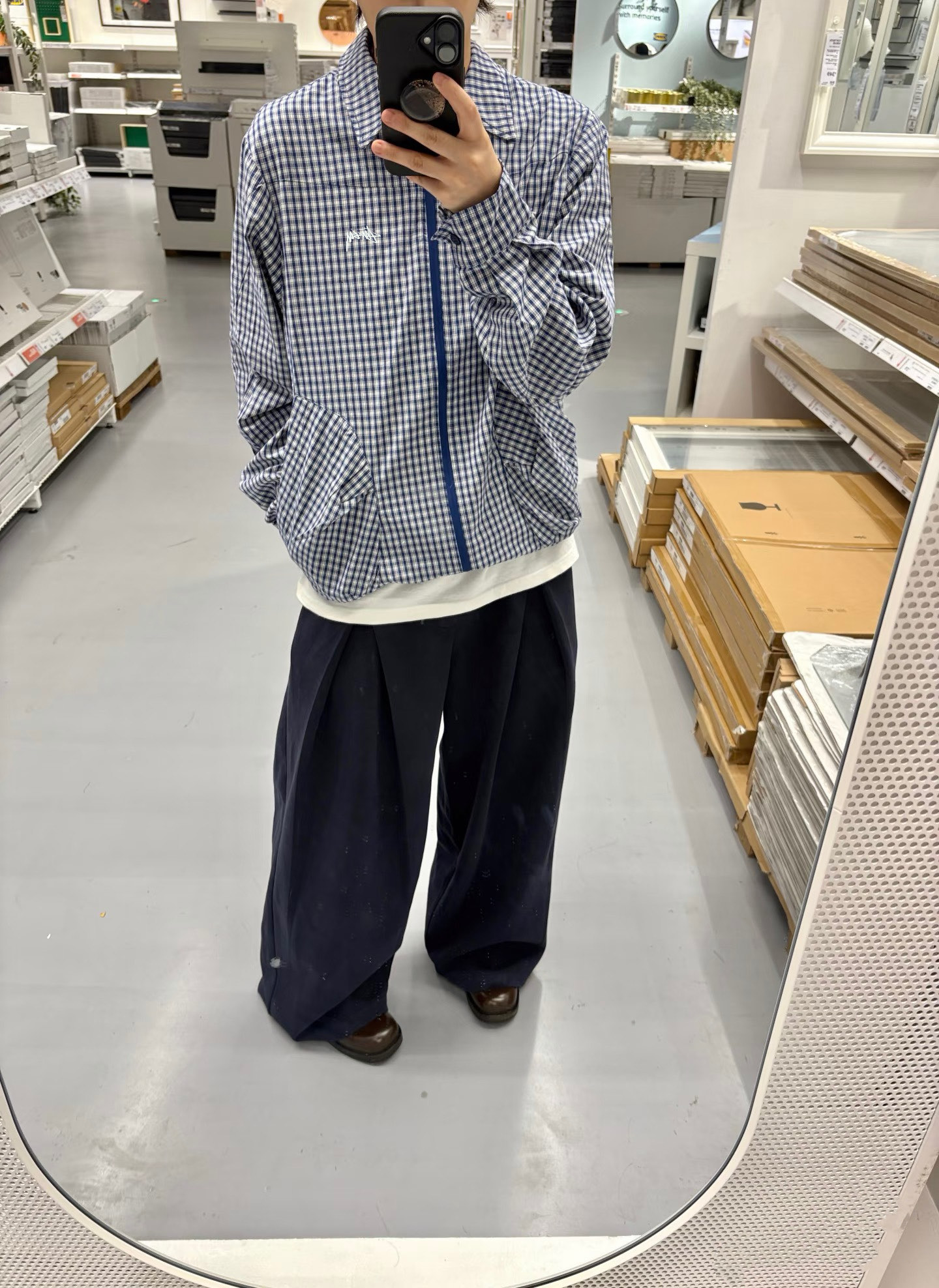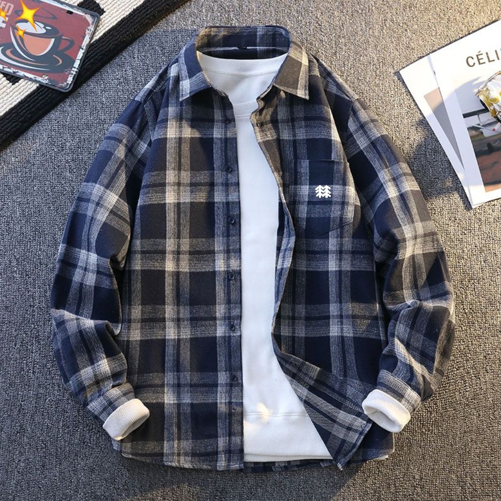 Stussy 斯图西新品蓝色格纹刺绣宽松情侣衬衫外套
