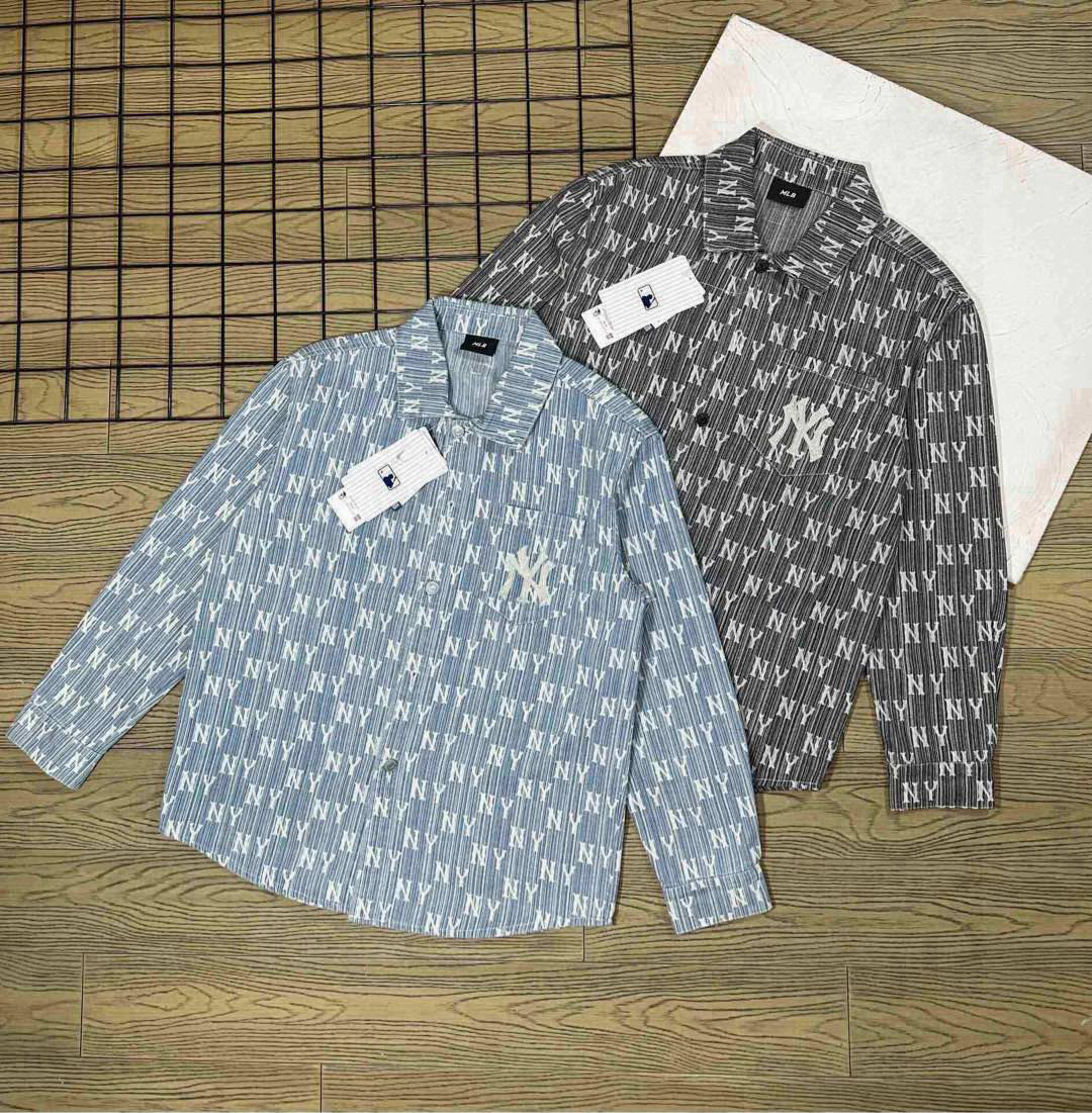 MLB男女复古几何老花牛仔衬衫新款时尚休闲宽松外套王 369517