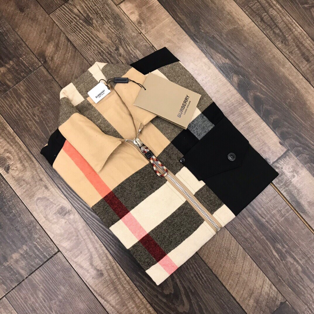 B家巴宝莉格纹羊毛混纺拉链前襟衬衫外套 416363